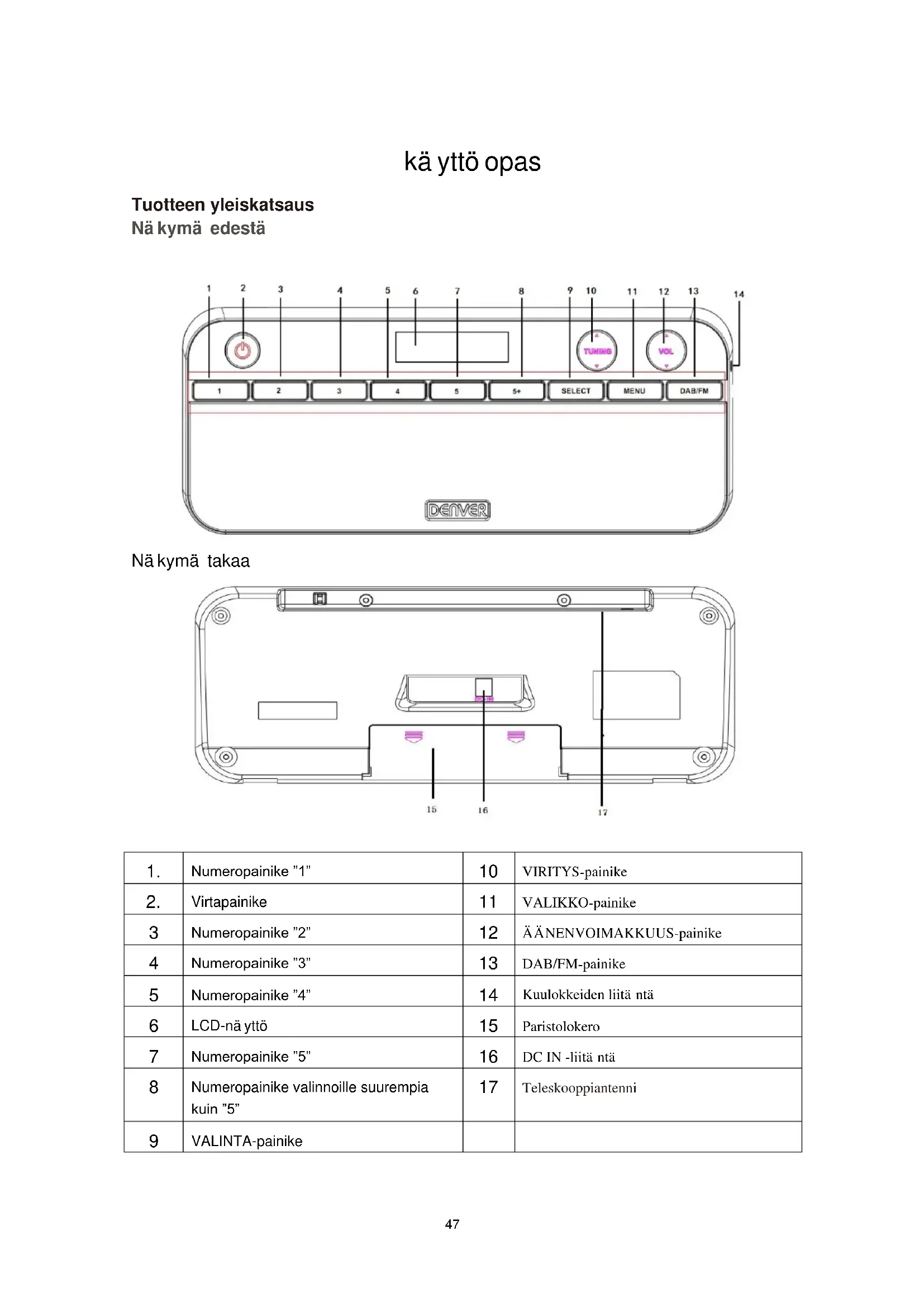 KÄYTTÖOHJE DAB47 DENVER
