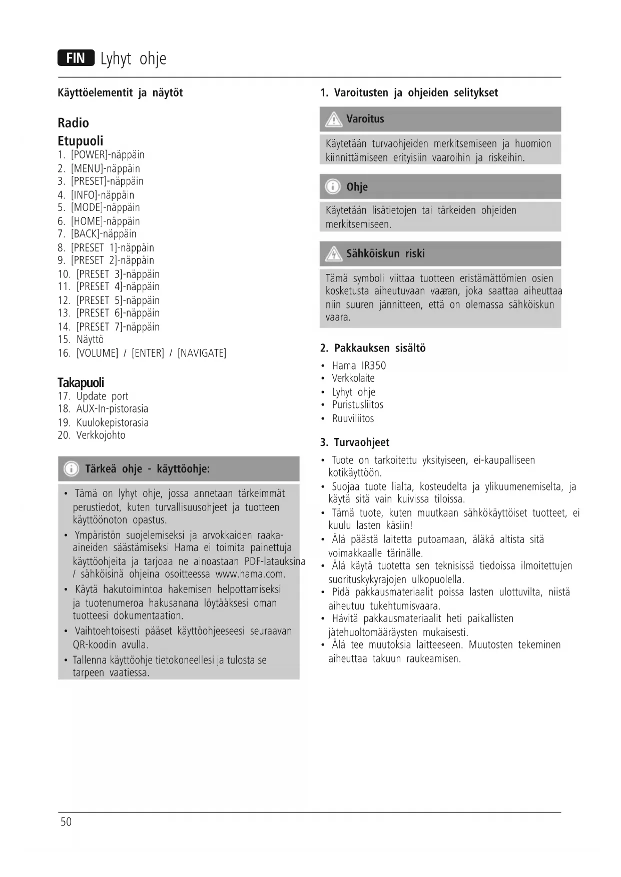 IR350M - Radio HAMA - Ilmainen käyttöohje ja opas