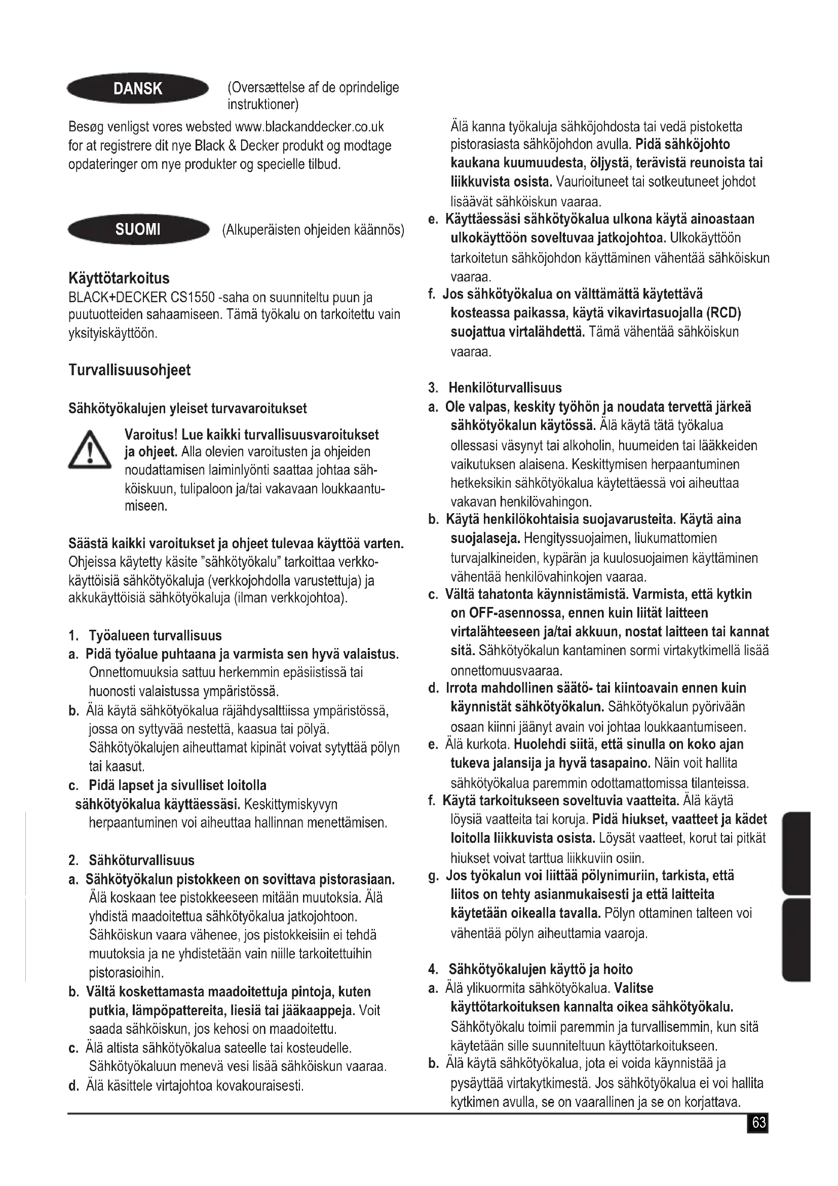 KÄYTTÖOHJE CS1550K BLACK & DECKER
