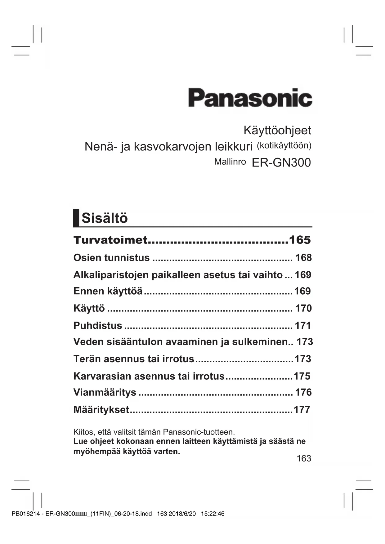 - Se ei sovellu käytettäväksi alle 0,5 mm pituisiin karvoihin. PB016214 - ER-GN300_(11FIN)_06-20-18.indd 170 2018/6/20 15:22:47171