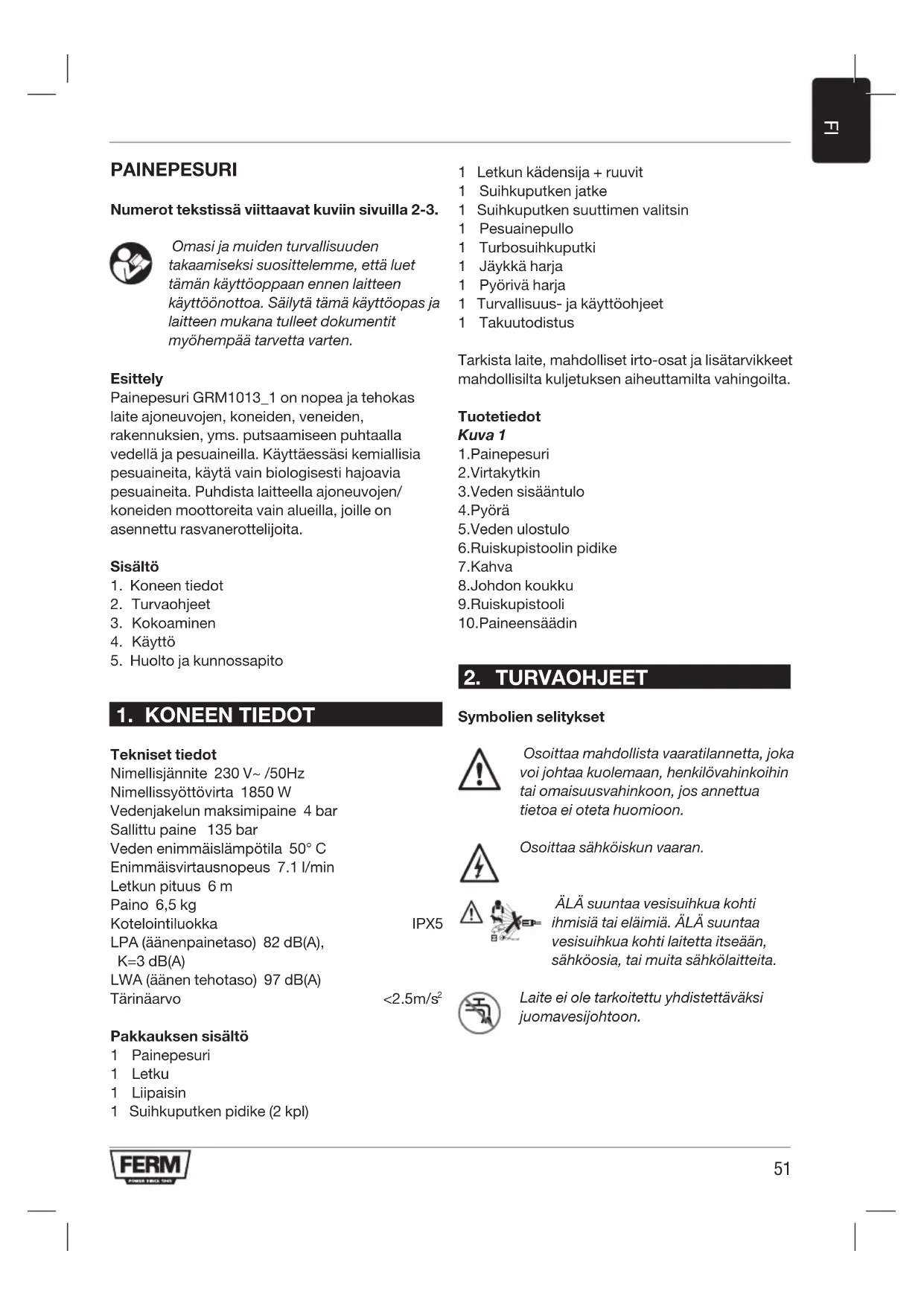 GRM1013 - Painepesuri Ferm - Ilmainen käyttöohje ja opas