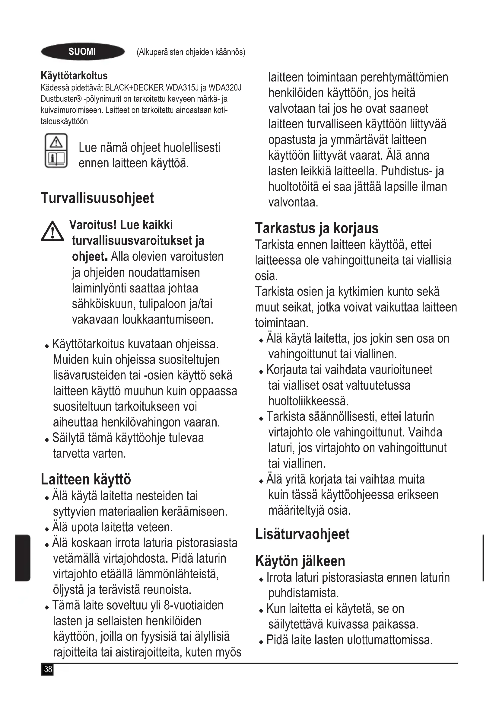 KÄYTTÖOHJE WDA315J BLACK & DECKER