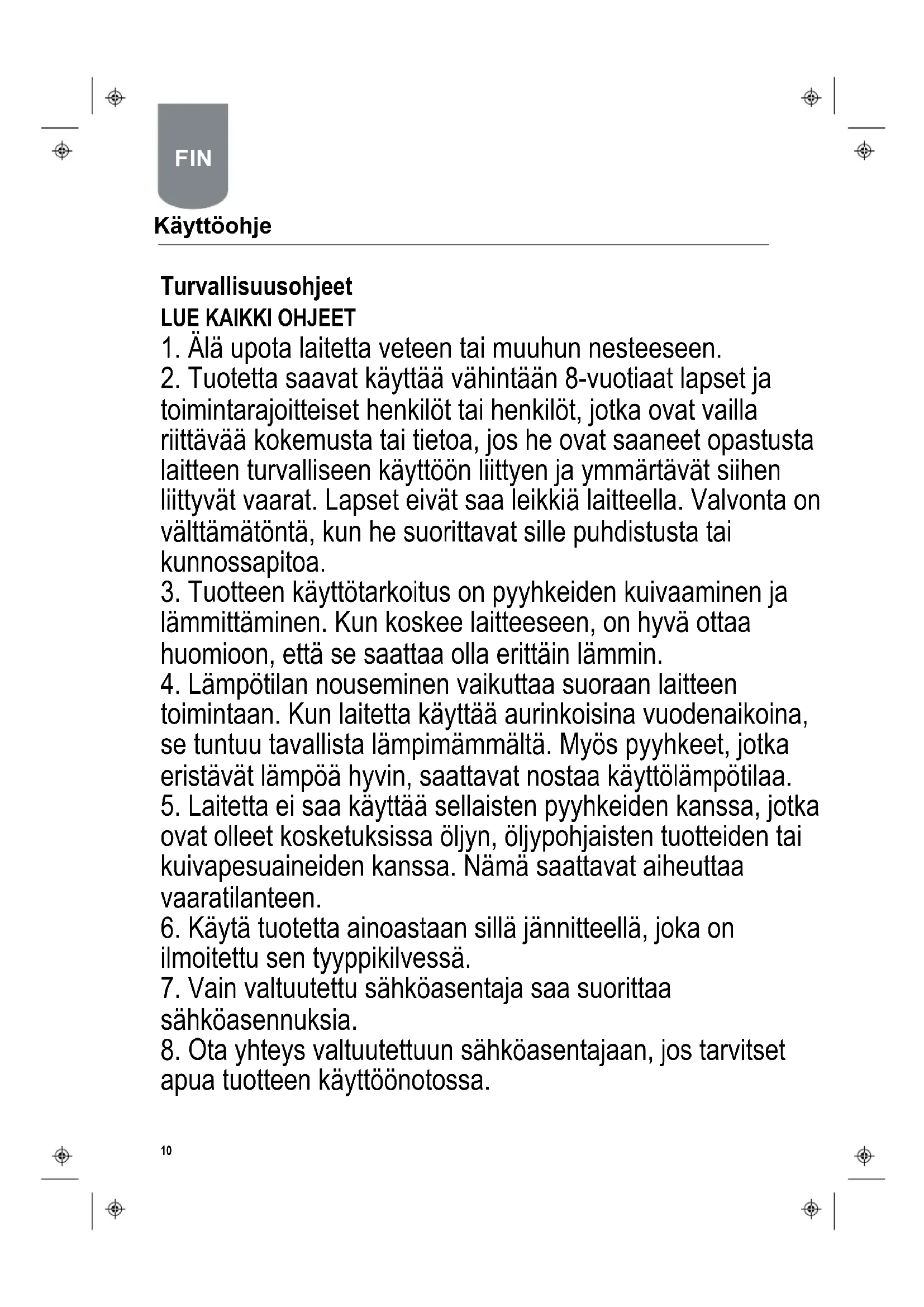 apua tuotteen käyttöönotossa. FIN Käyttöohje11