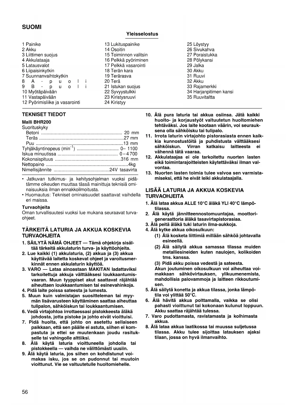 KÄYTTÖOHJE BHR202RFE MAKITA