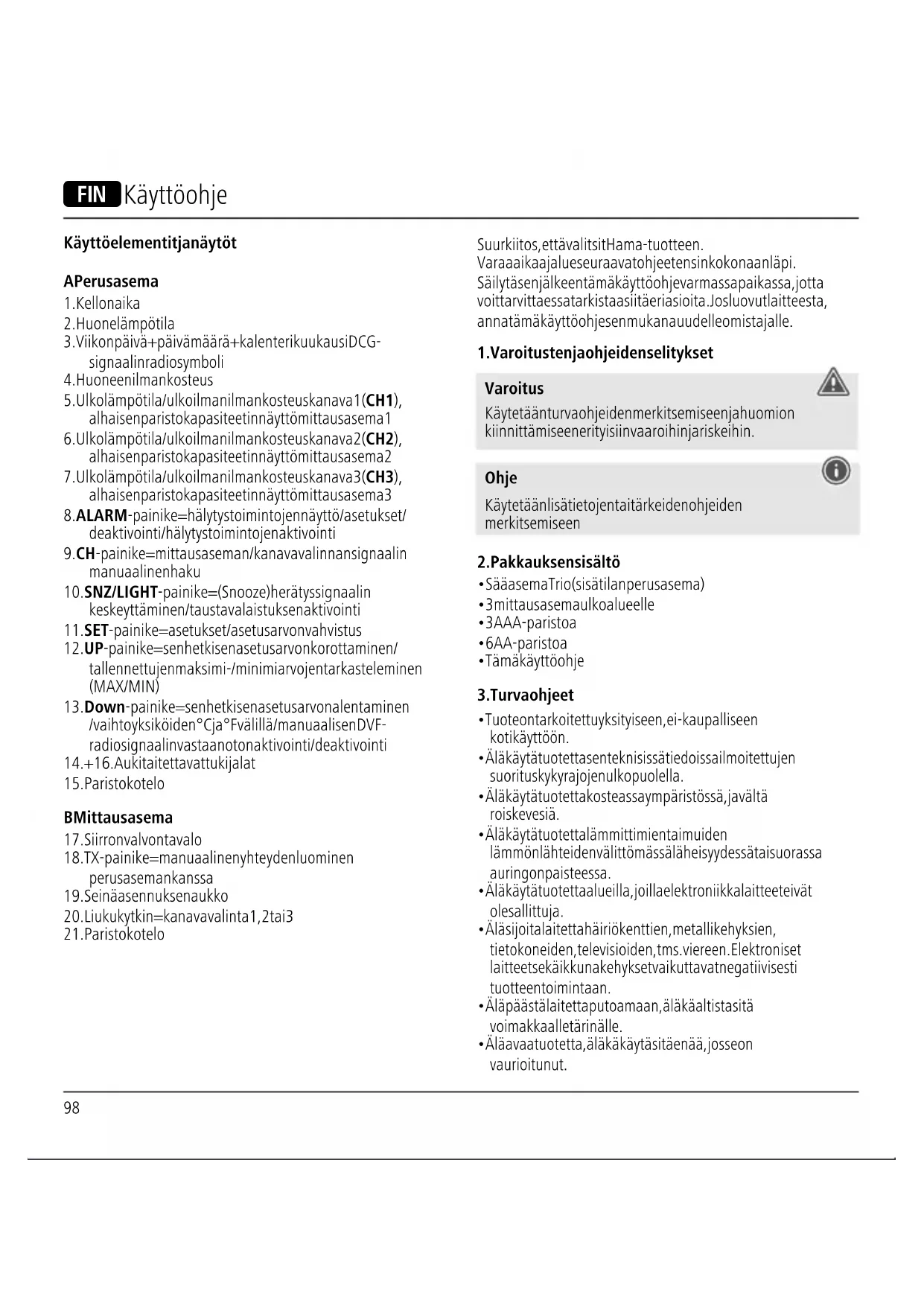 EWSTrio - Sääasema HAMA - Ilmainen käyttöohje ja opas