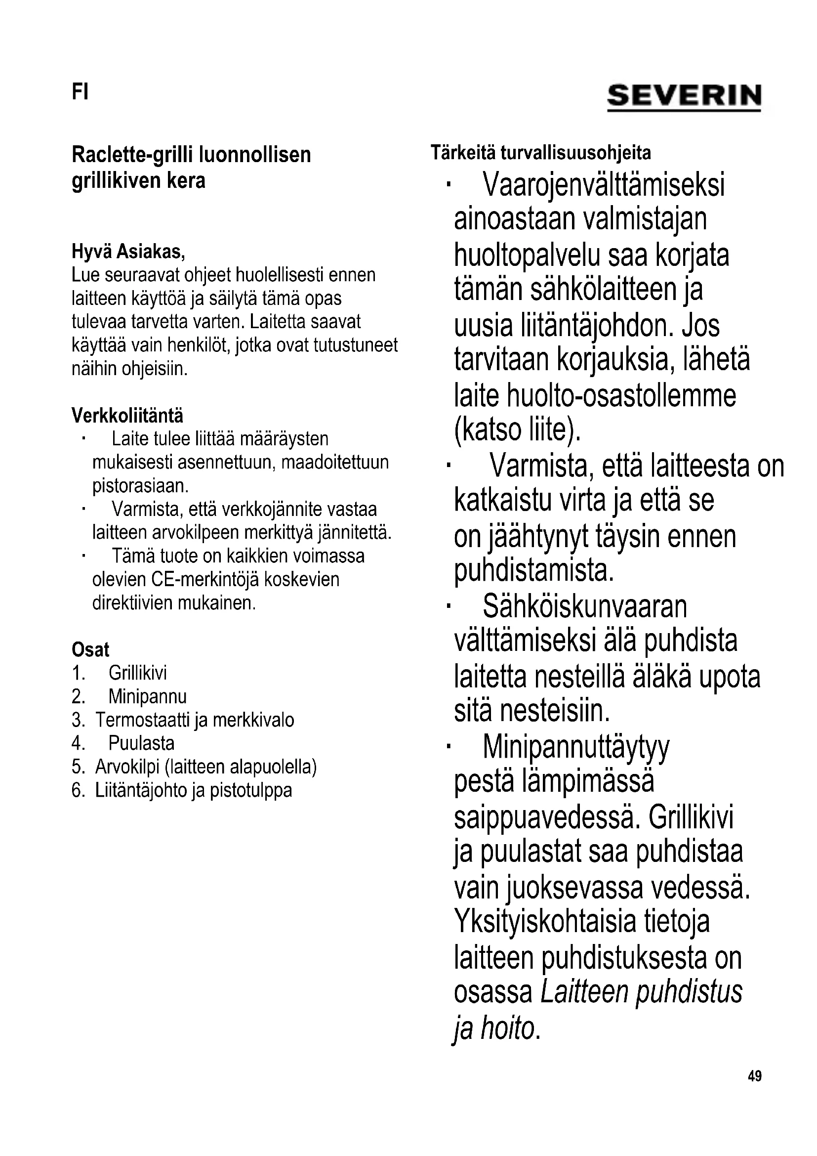 KÄYTTÖOHJE RG 2346 SEVERIN