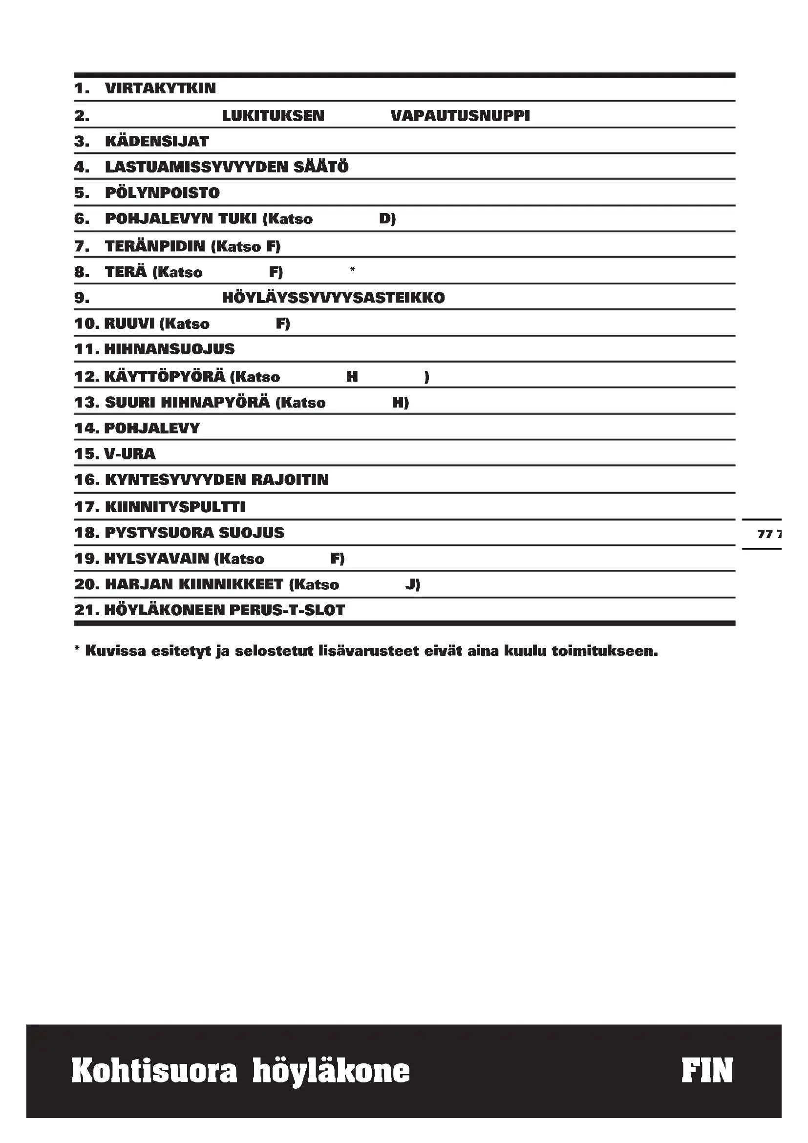 - Kuvissa esitetyt ja selostetut lisävarusteet eivät aina kuulu toimitukseen.