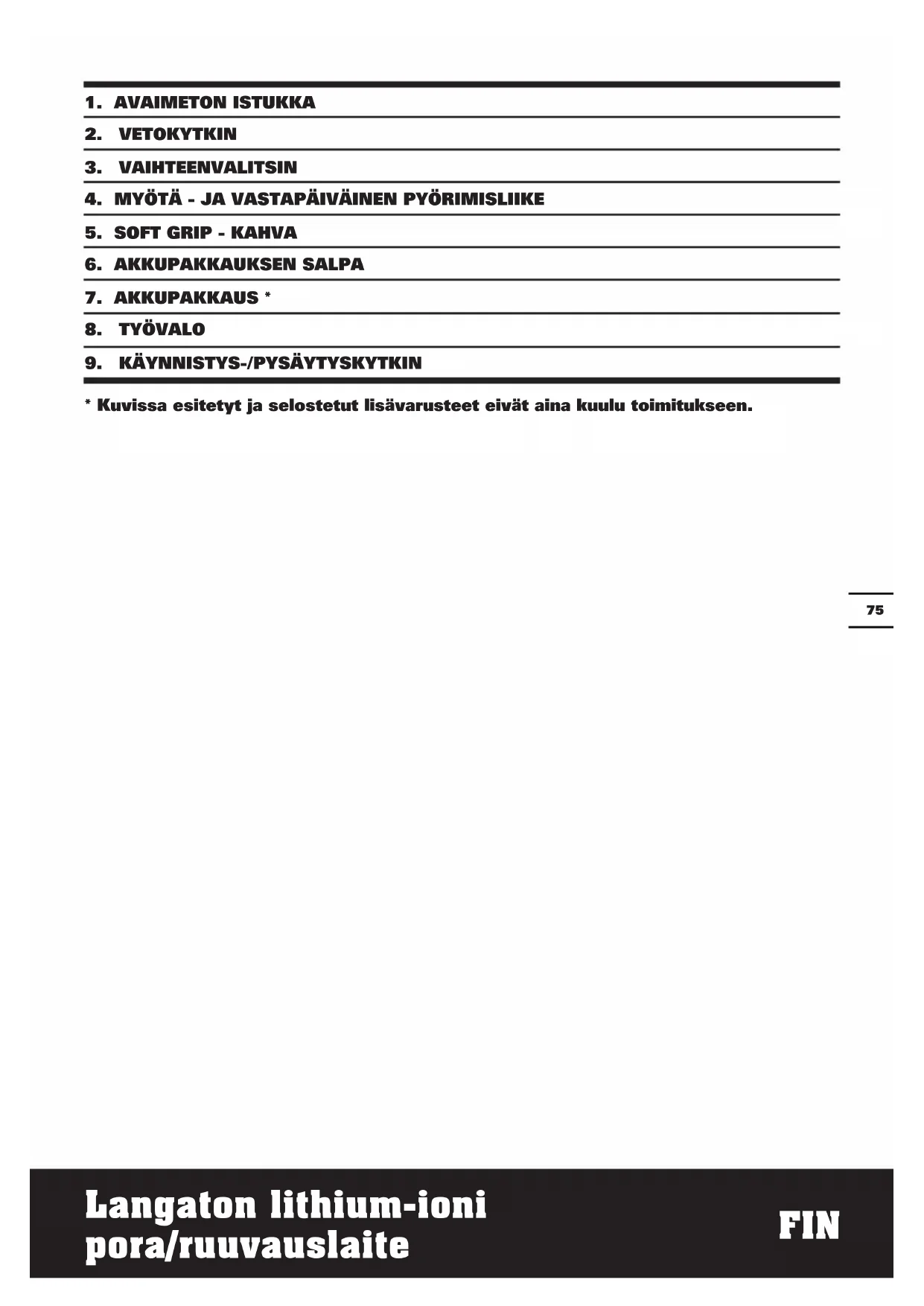 toimitettuja lisäkahvoja. Hallinnan menettäminen saattaa johtaa loukkaantumisiin.