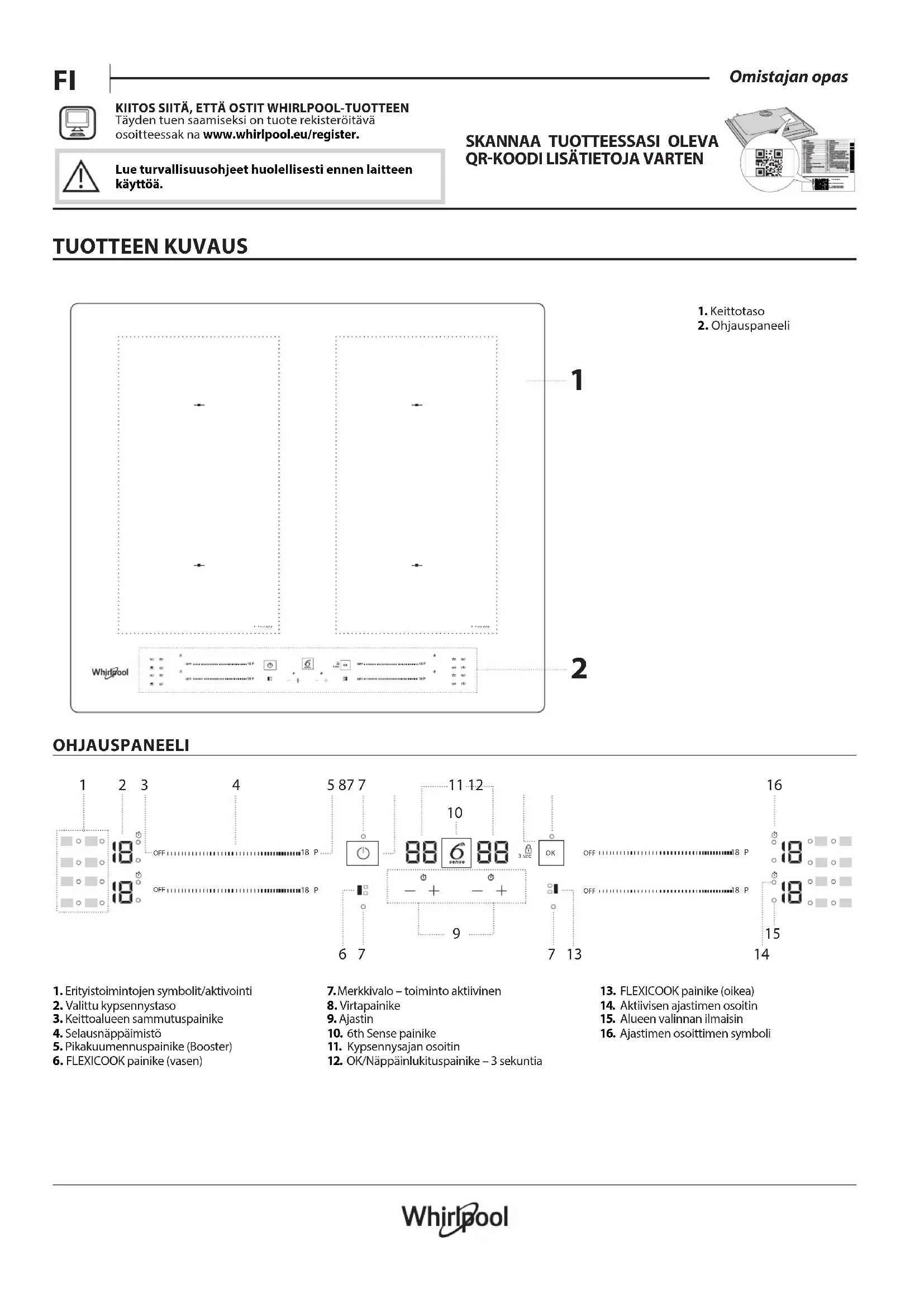 Täyden tuen saamiseksi on tuote rekisteröitävä osoitteessa www.whirlpool.eu/register. SKANNAA TUOTTEESSASI