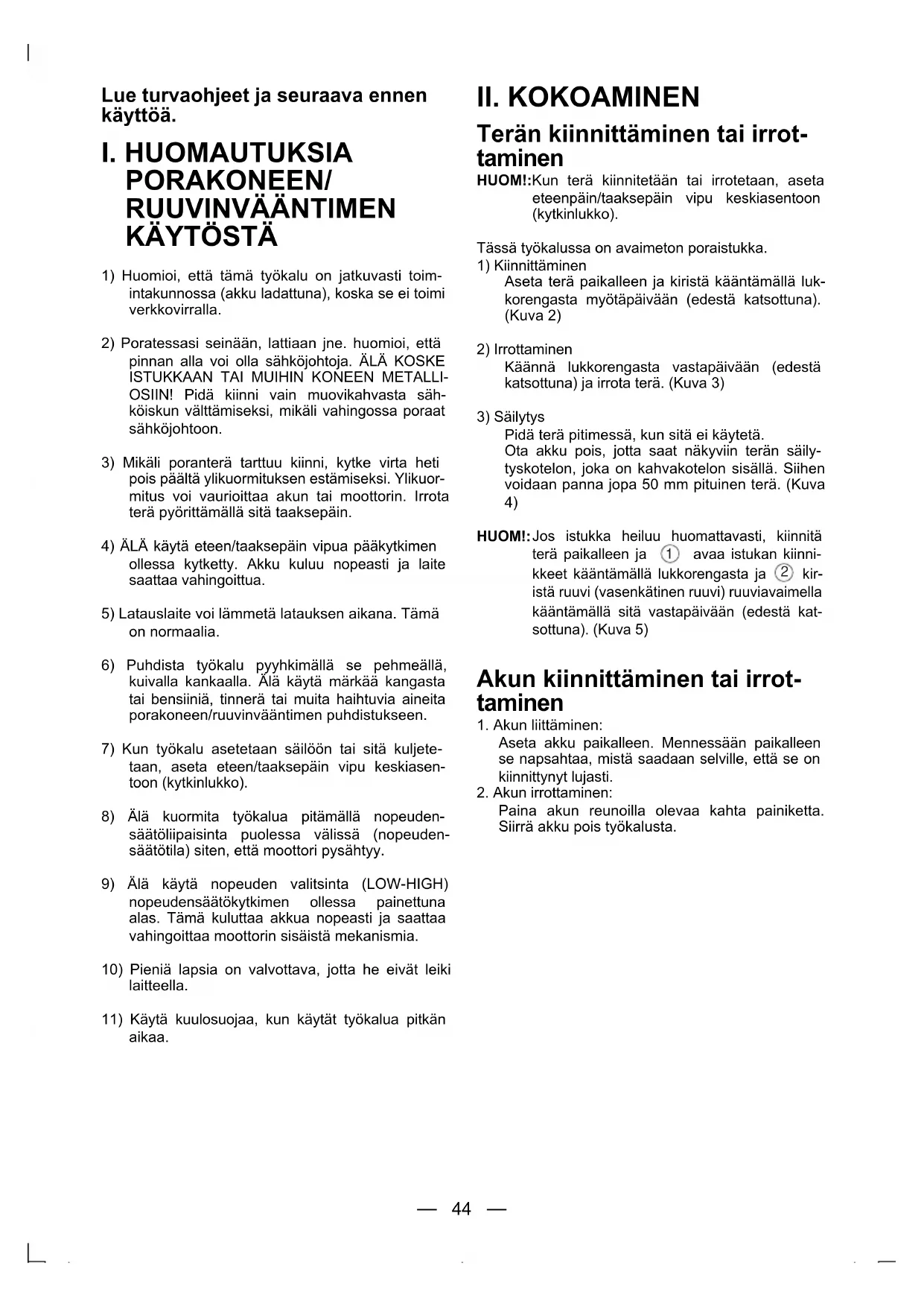 I. HUOMAUTUKSIA PORAKONEEN/ RUUVINVÄANTIMEN KÄYTÖSTÄ
