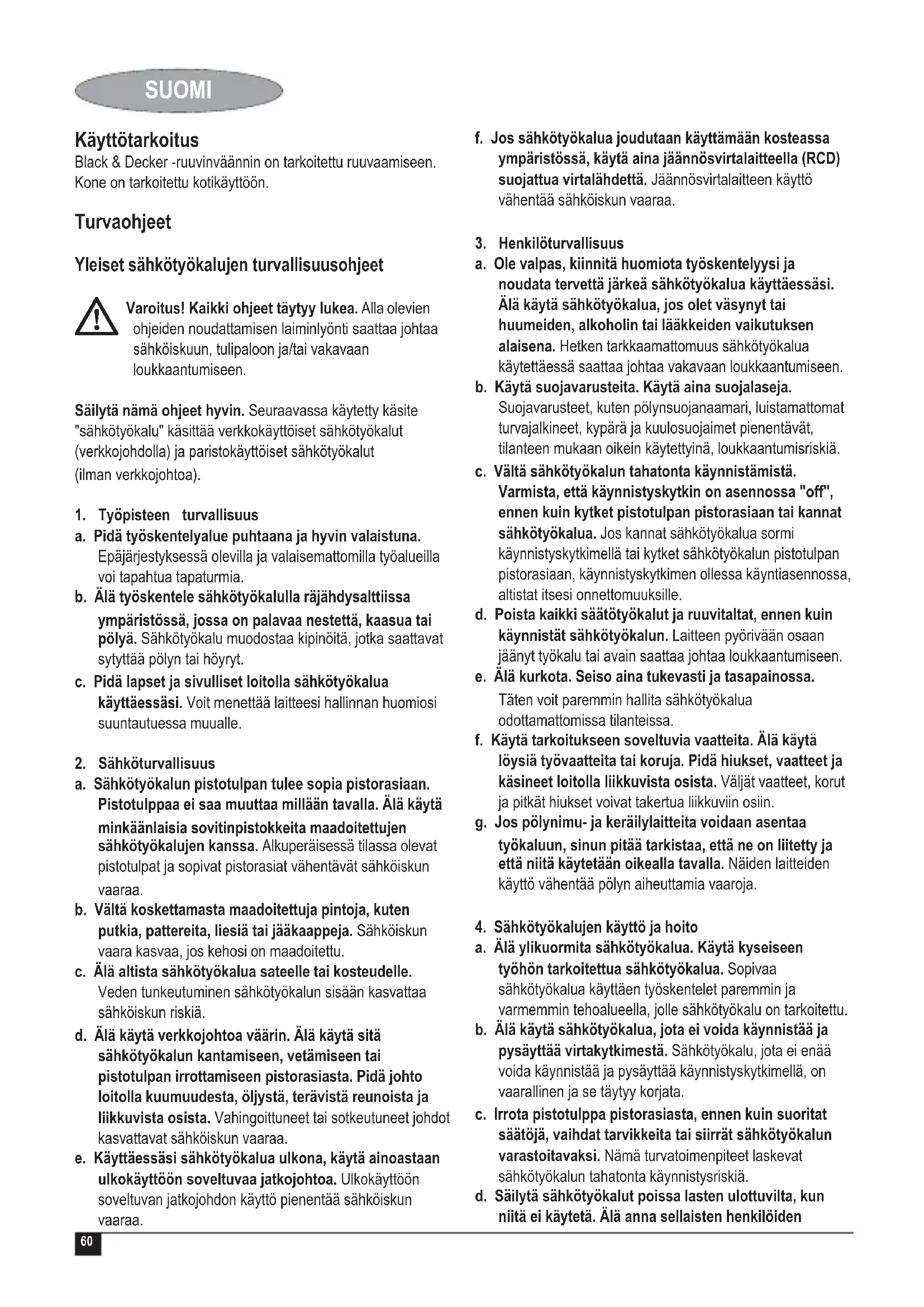 Black & Deckerin langallinen/langaton laite/tyokalu on suunniteltu toimimaan mahdollisimman pitkän aikaa mahdollisimman vahalla huololla. Asianmukainen kaytto ja saannnonmukainen puhistus takaavat laitteen jatkuvan tyydyttävän toiminnan.