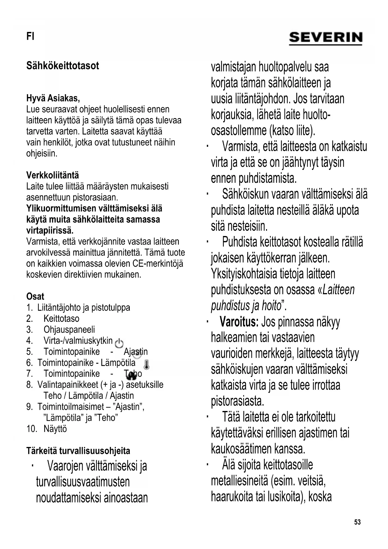 KP 1031 - Sähköliesitaso SEVERIN - Ilmainen käyttöohje ja opas