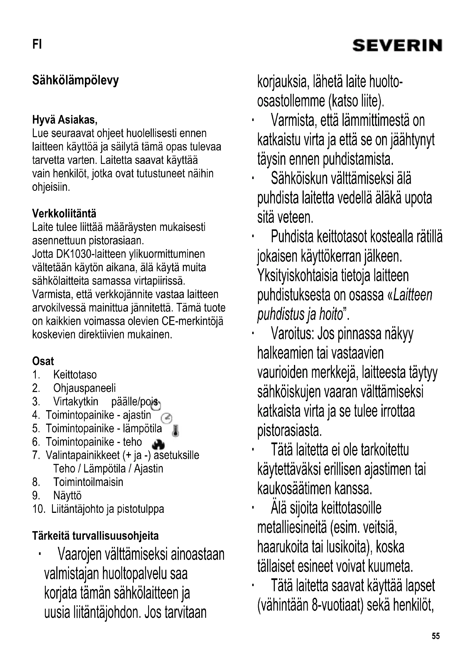 FI Käyttöohje Sähkölämpölevy 55