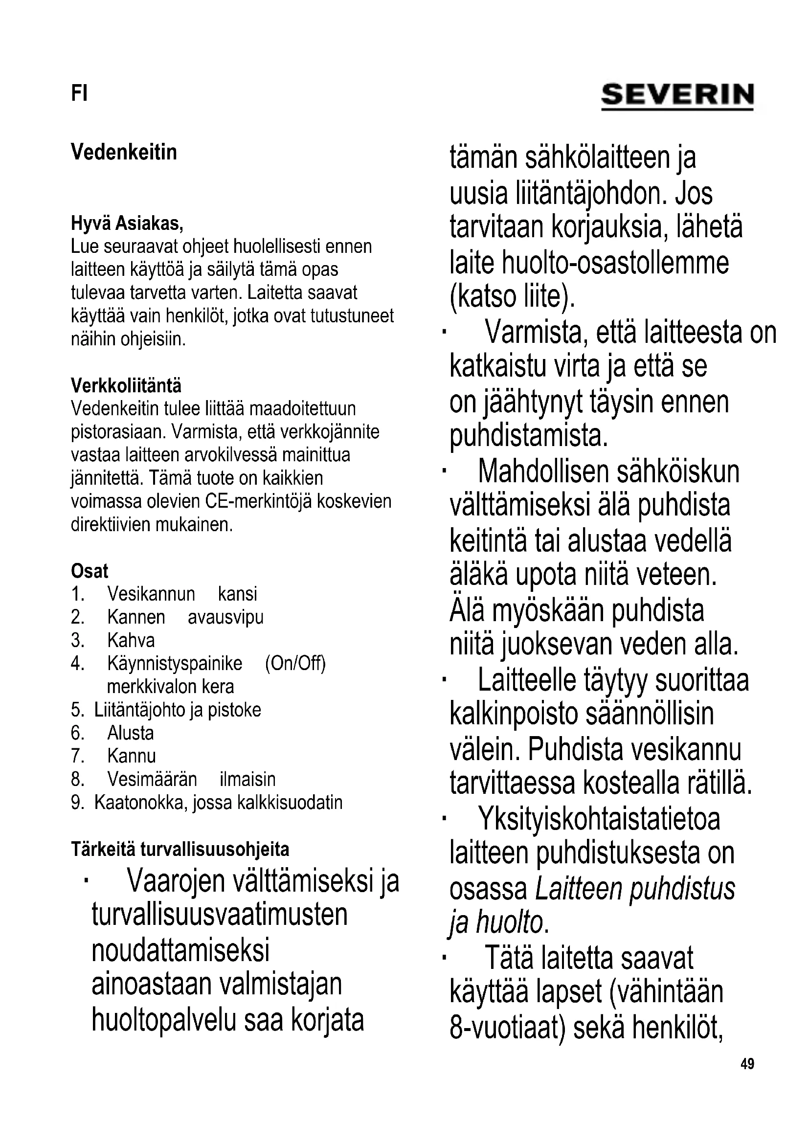 KÄYTTÖOHJE WK 3417 SEVERIN