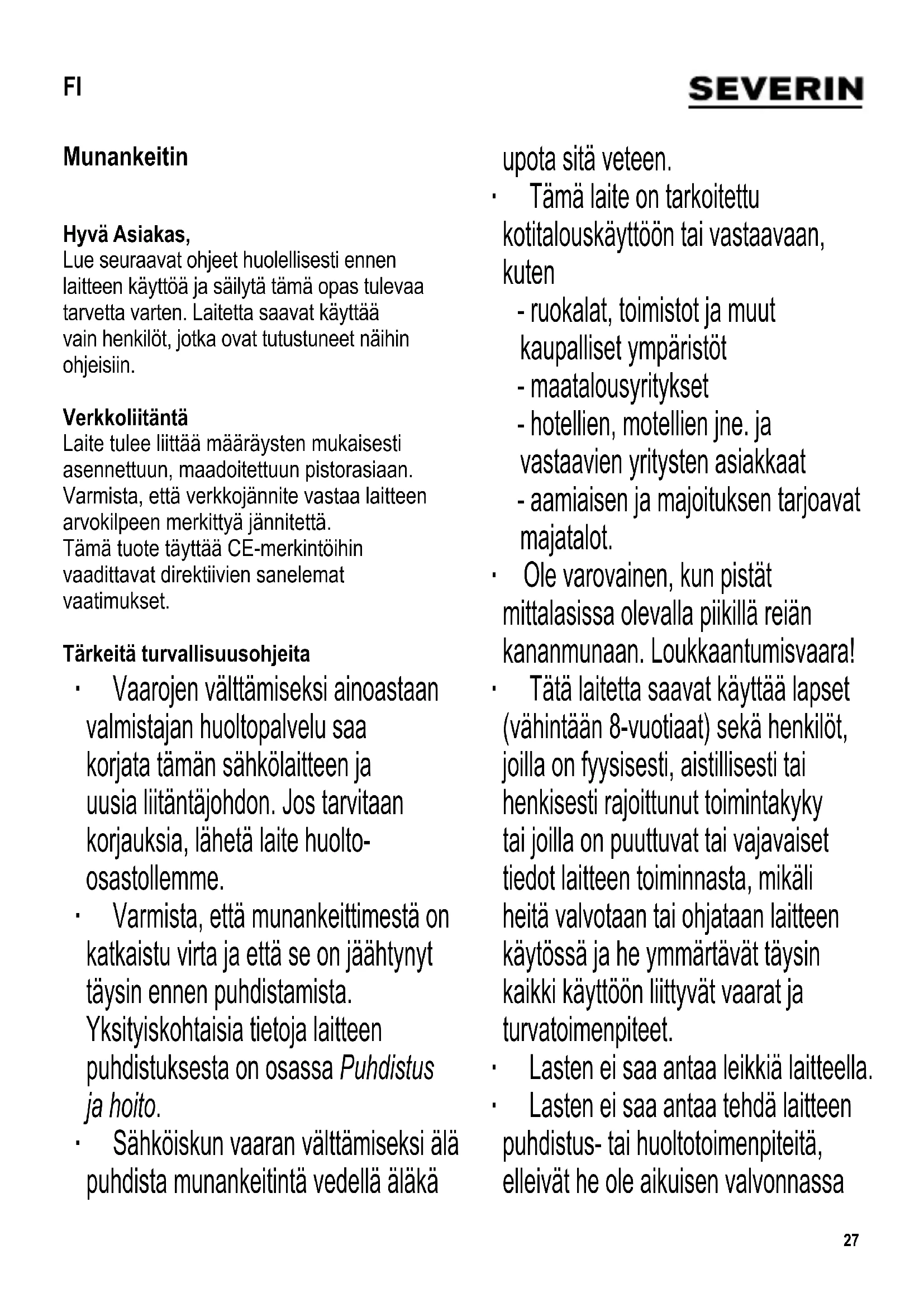 EK 3053 - Munankeitin SEVERIN - Ilmainen käyttöohje ja opas