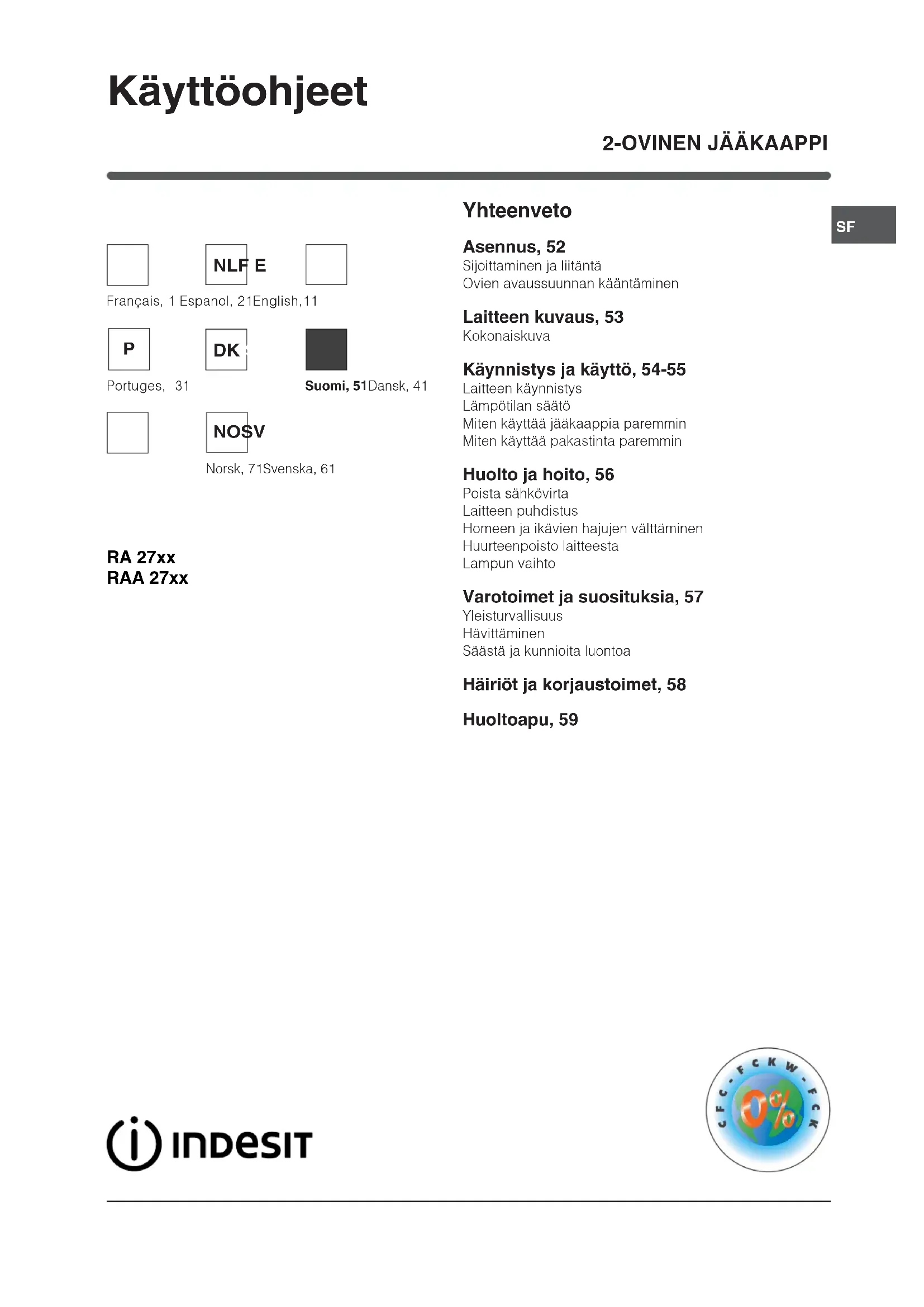 KÄYTTÖOHJE RAA 27 IX (0) INDESIT