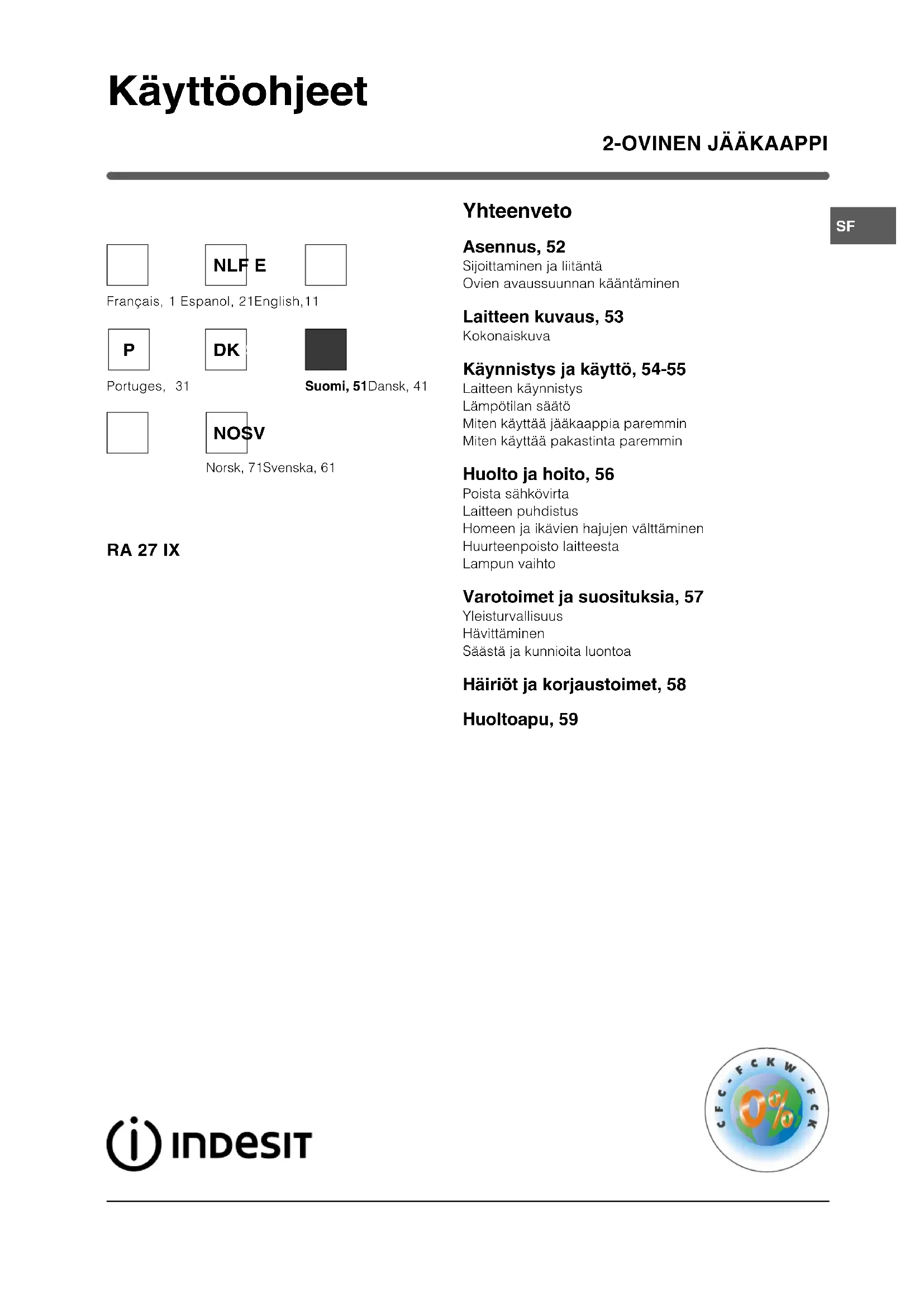 KÄYTTÖOHJE RA 27 IX (FR) INDESIT