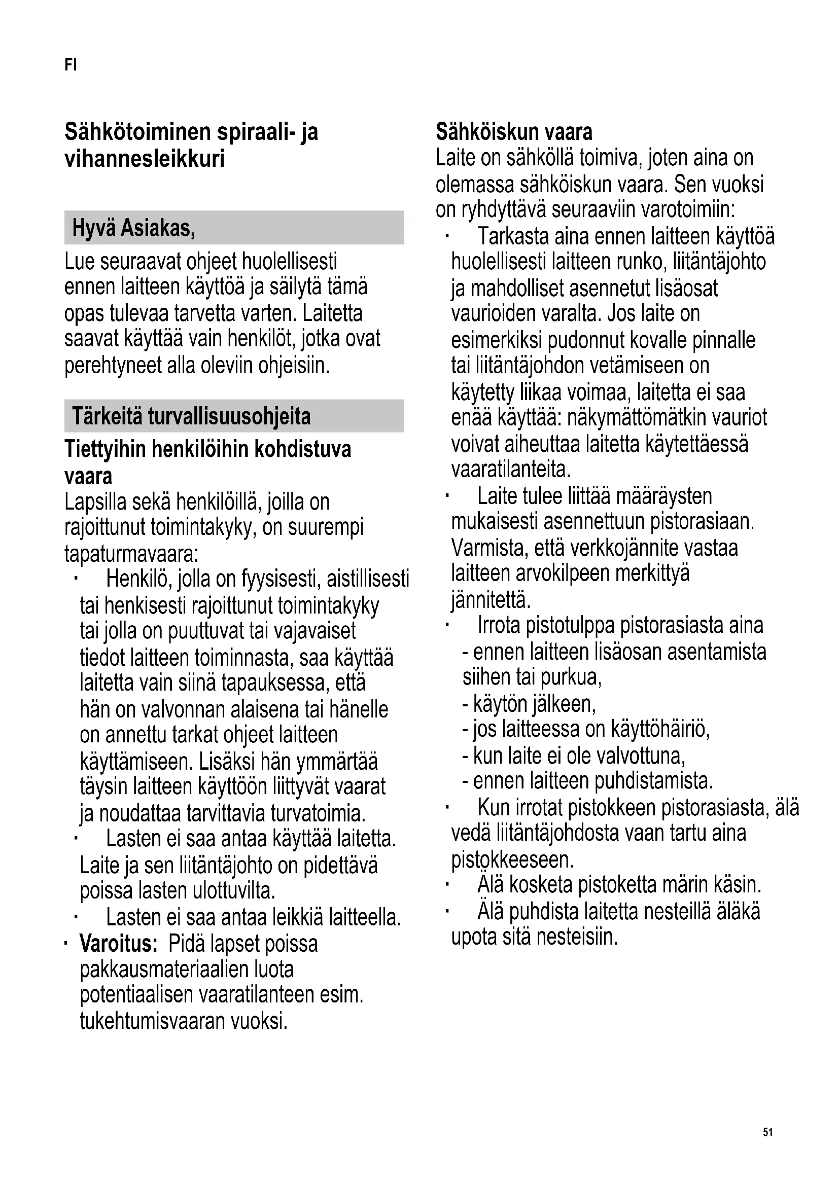 FI Käyttöohje Sähkötoiminen spiraali- ja vihannesleikkuri 51