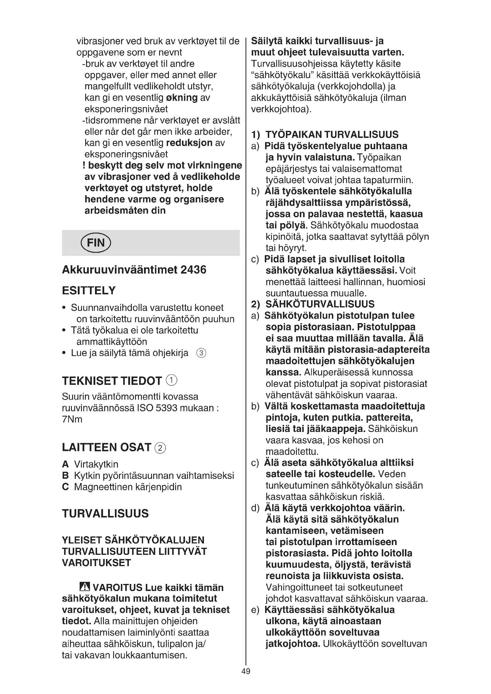 KÄYTTÖOHJE 2436 AA SKIL