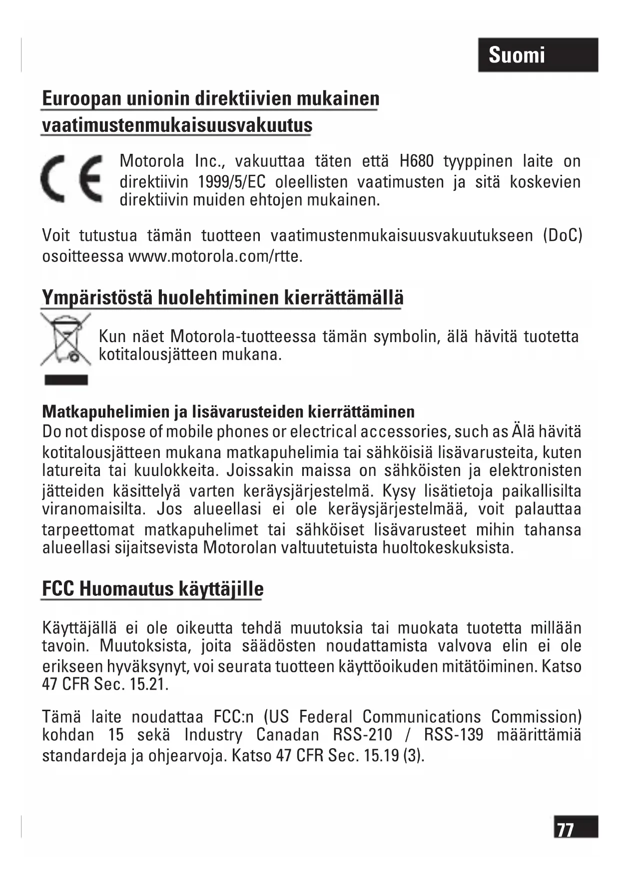Löydä laitteen käyttöohje ilmaiseksi H680 MOTOROLA PDF-muodossa.