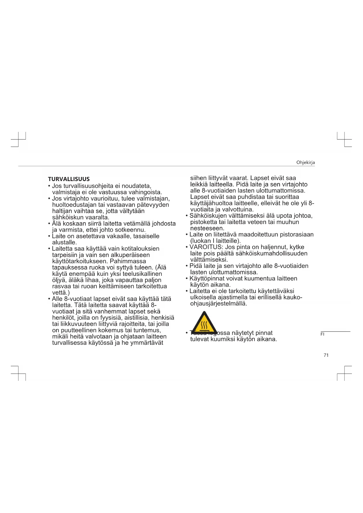 - Tässä logossa näytetyt pinnat tulevat kuumiksi käytön aikana. FIOhjekirja