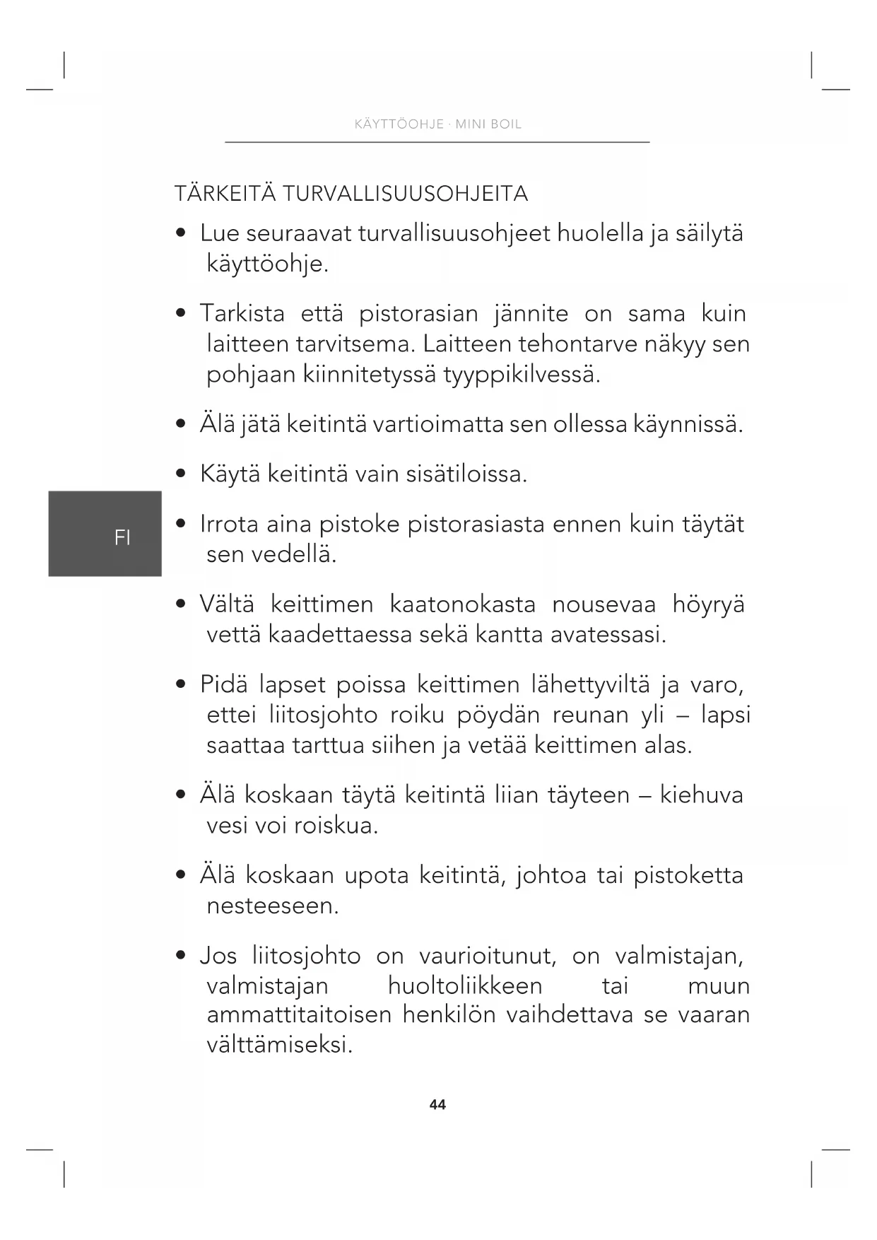 - Tämä keitin on tarkoitettu vain veden lämmitykseen.