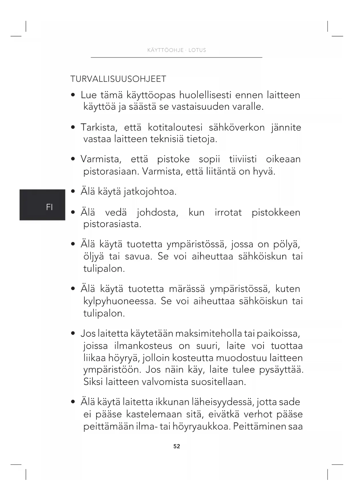 - Älä käytä jatkojohtoa.