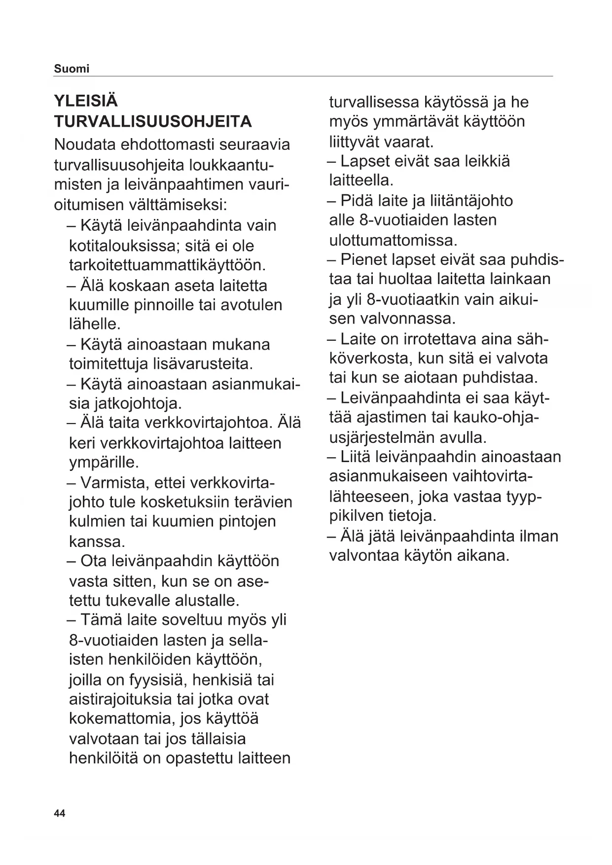 - Aseta leivänpaahdin tasai- selle, liukumattomalle alustalle pistorasian läheisyyteen.