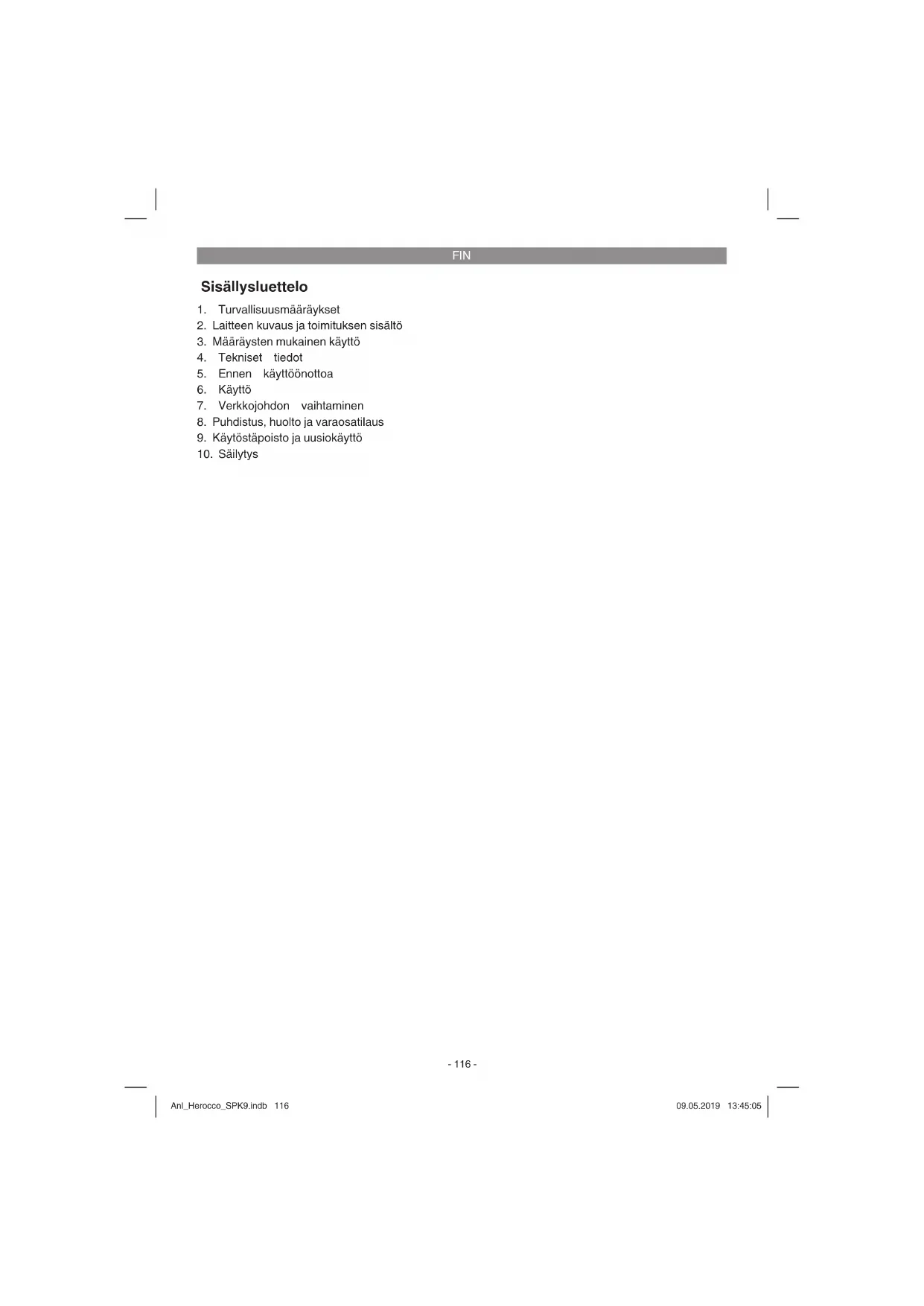 käyttökohdassa piilossa olevia sähköjohtoja tai kaasu- tai vesiputkia. Anl_Herocco_SPK9.indb 119Anl_Herocco_SPK9.indb 119 09.05.2019 13:45:0609.05.2019 13:45:06FIN