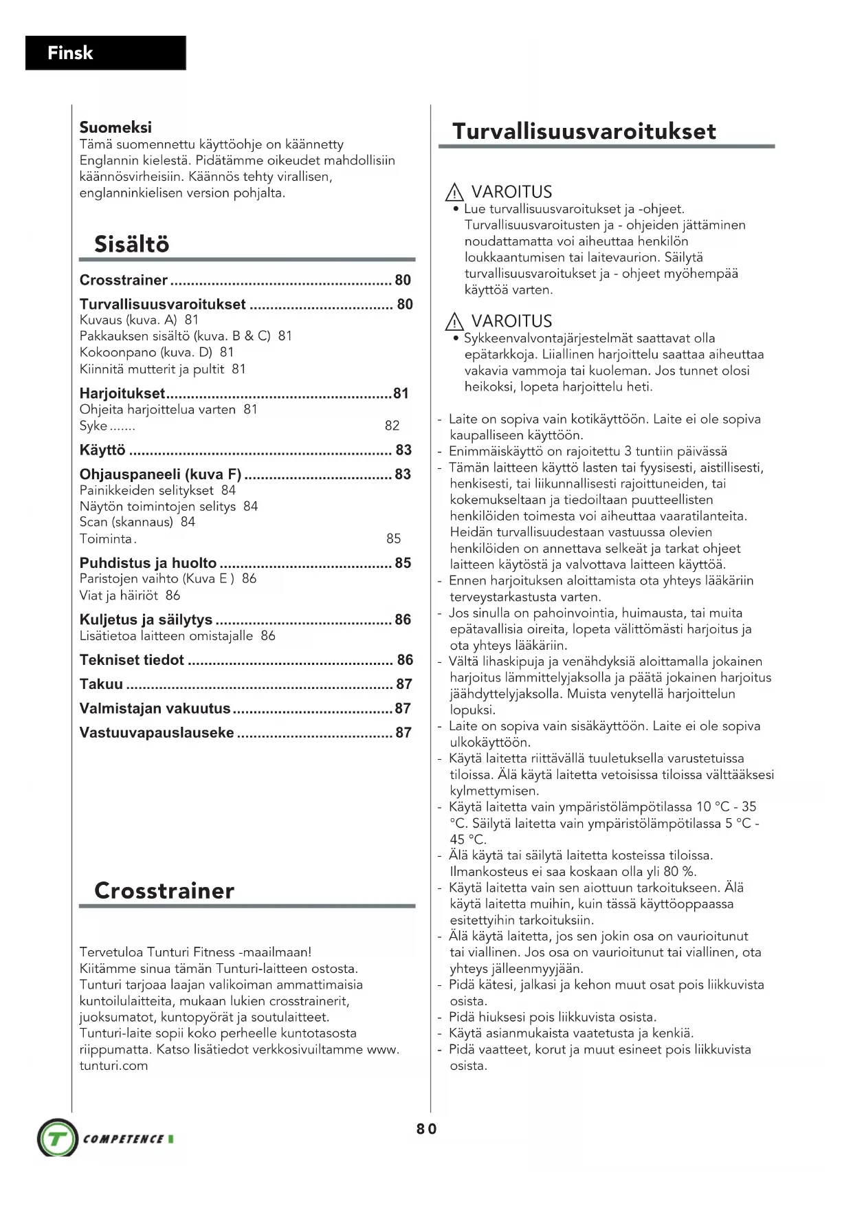 Compentence C25F - Crosstrainer TUNTURI - Ilmainen käyttöohje ja opas