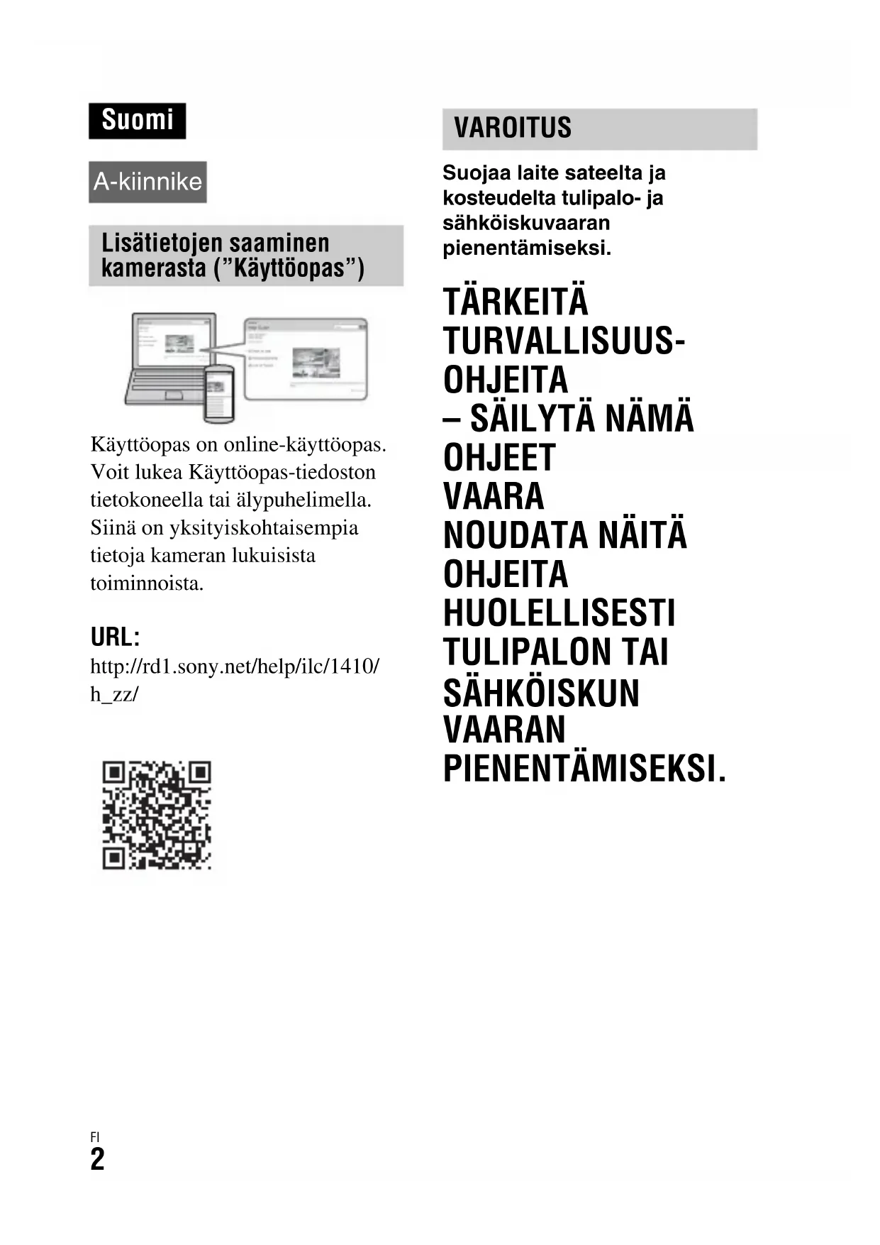 Käytöopas on online-käytöopas. Voit lukea Käytöopas-tiedoston tietokoneella tai ölypuhelimella. Siinä on yksityiskohtaisempia tietoja kameran lukuisista toiminnoista.