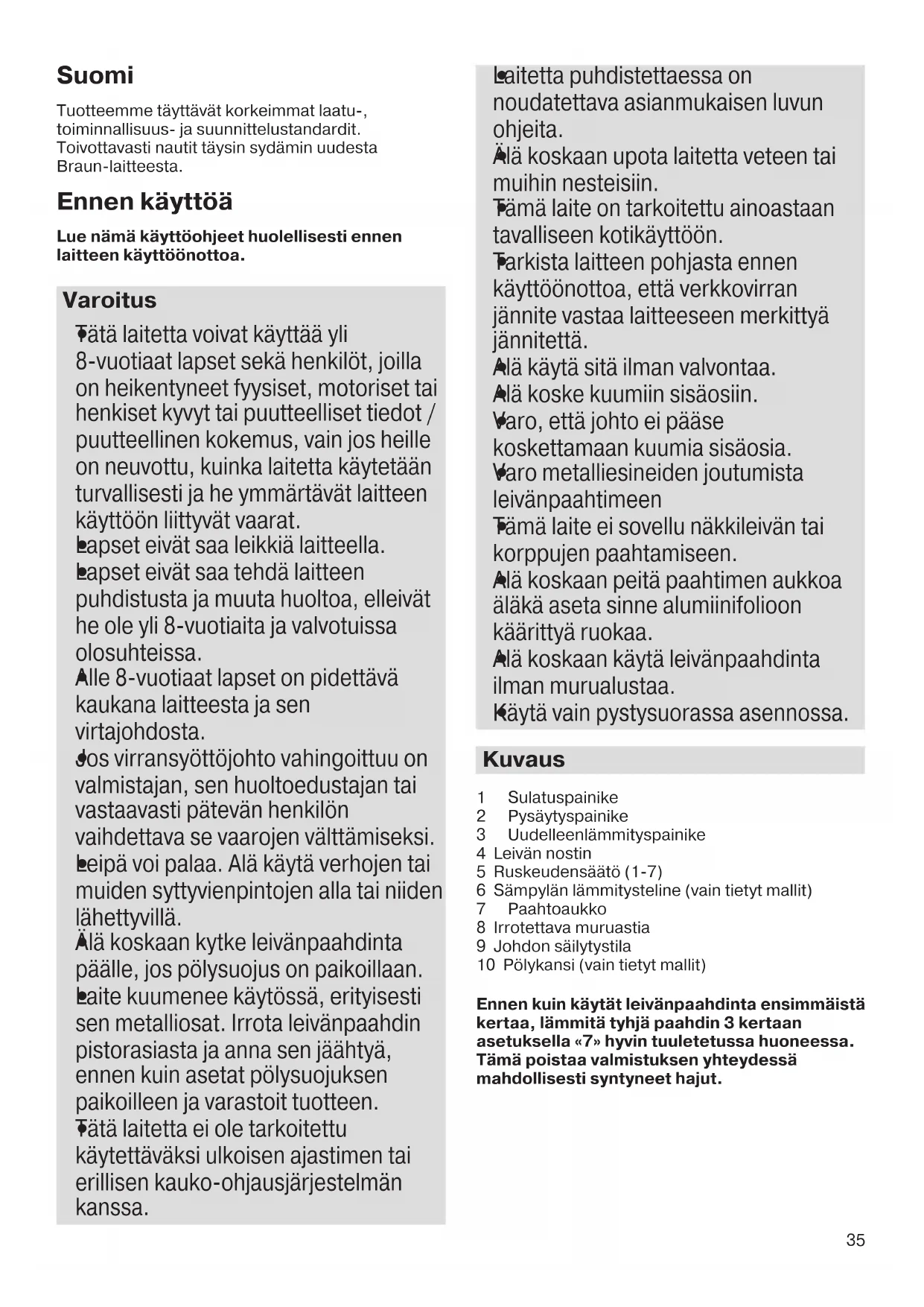 Tämä laite ei sovellu näkkileivän tai korppujen paahtamiseen.