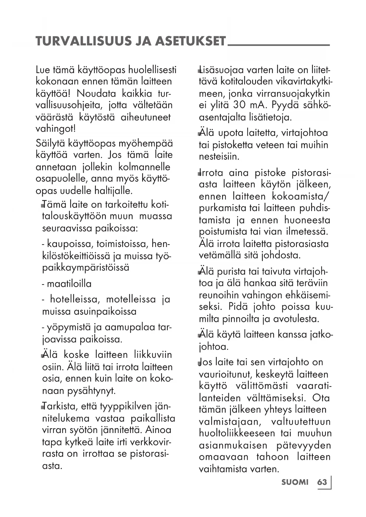 Muista säilyttää laitetta lasten ulottumatto- missa.68 SUOMI TIETOJA