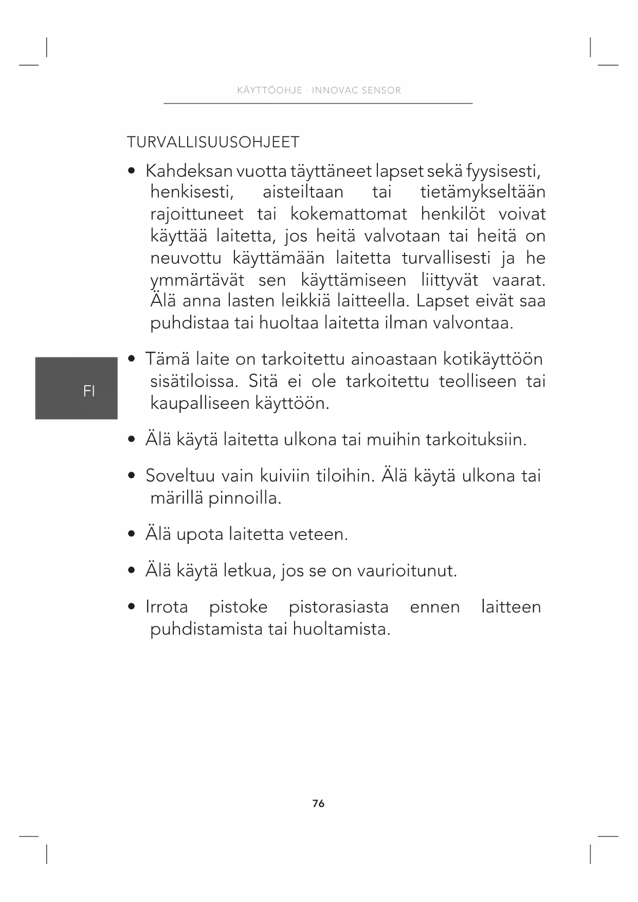 - Soveltuu vain kuiviin tiloihin. Älä käytä ulkona tai märillä pinnoilla.