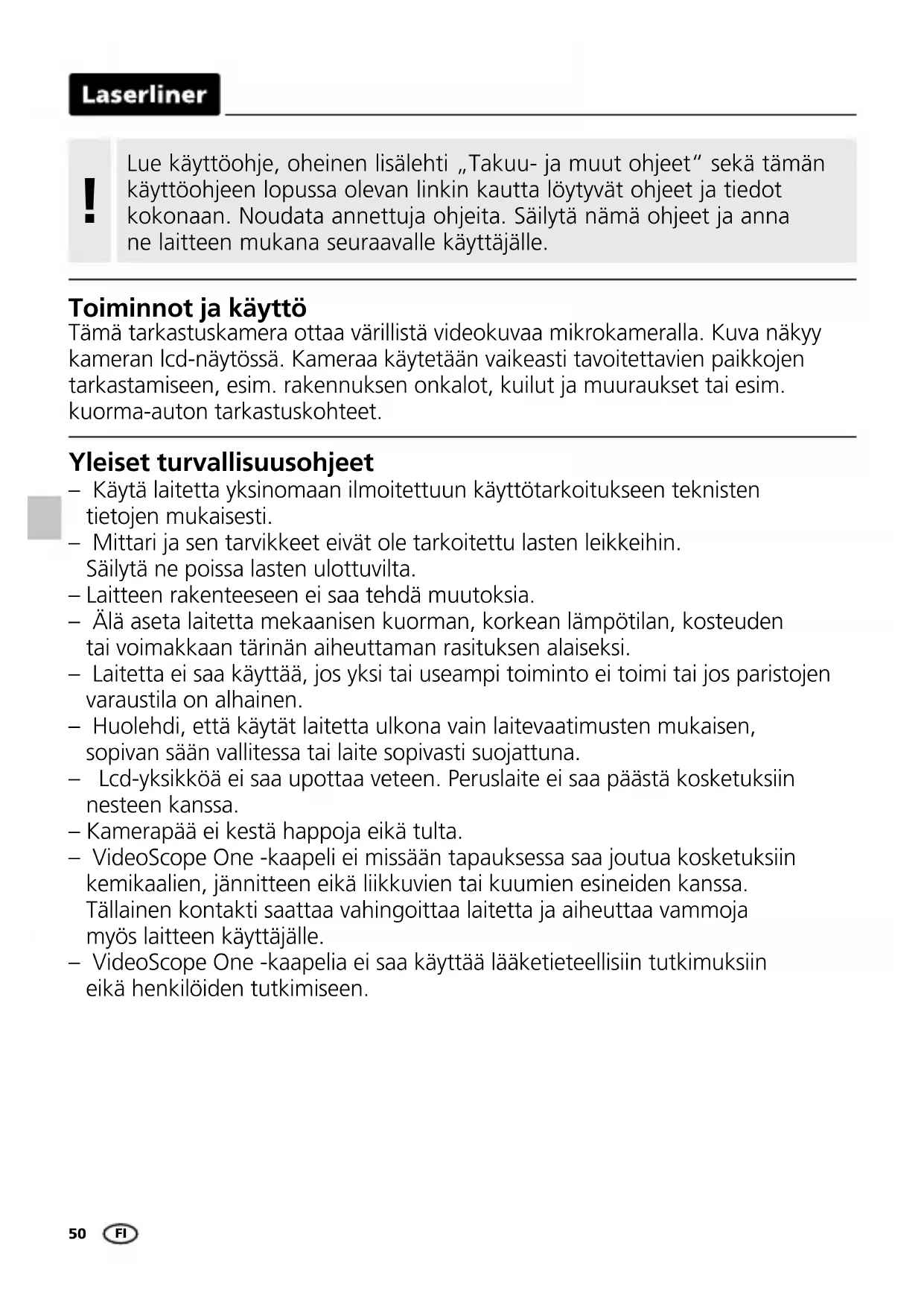 KÄYTTÖOHJE VideoScope One Laserliner