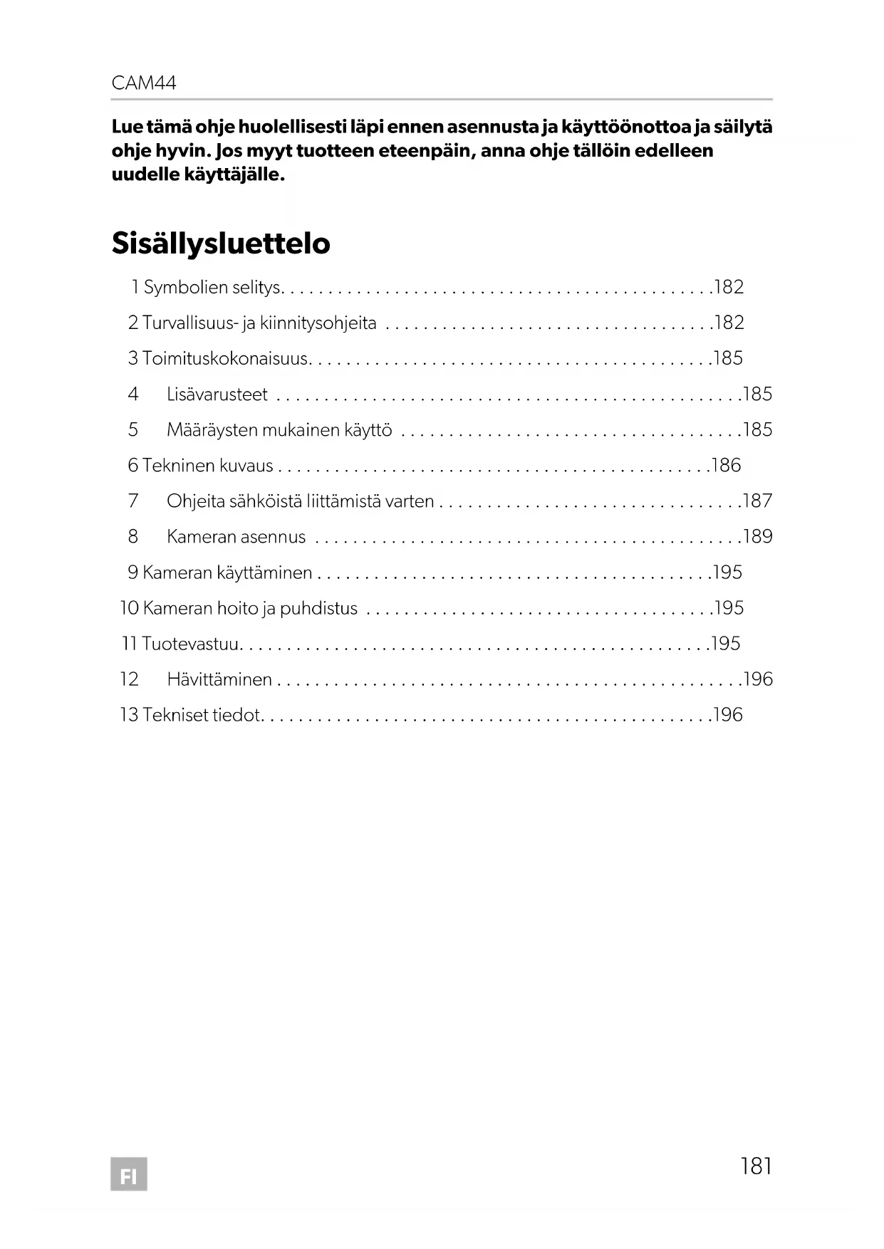 - 13 Tekniset tiedot CAM44-IO-16s.book Seite 181 Mittwoch, 5. Oktober 2016 11:38 11FI Symbolien selitys CAM44 p. 196