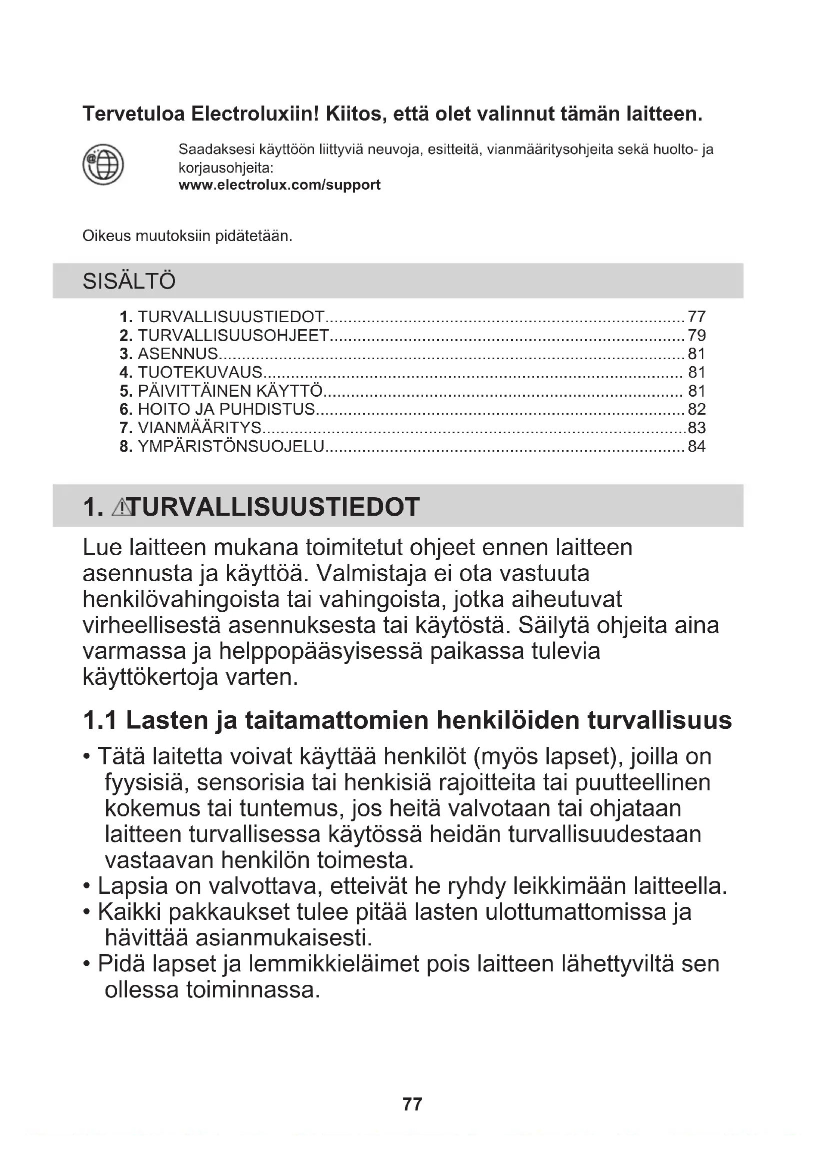 1.1 Lasten ja taitamattomien henkilöiden turvallisuus