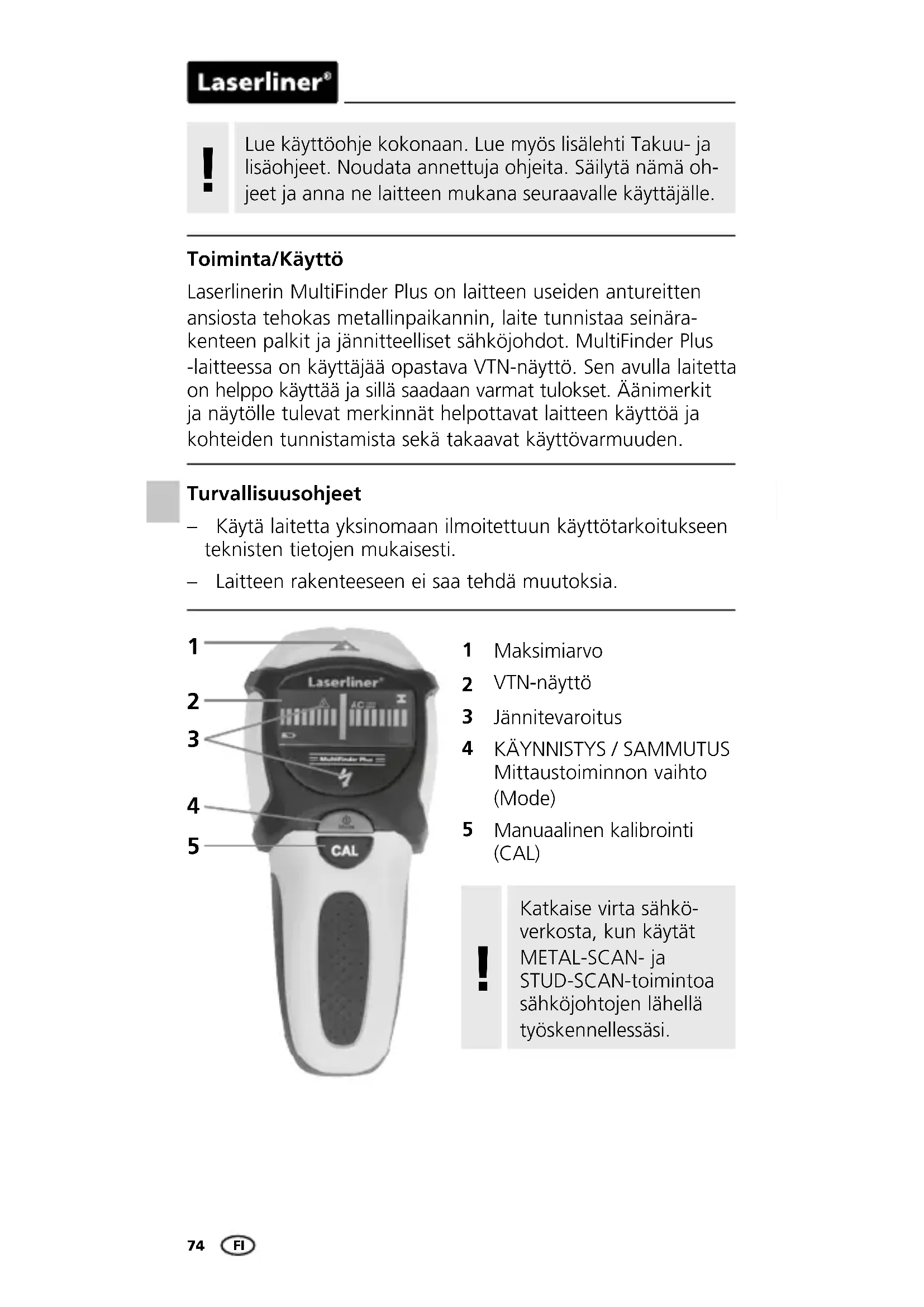 KÄYTTÖOHJE MultiFinder Plus Laserliner