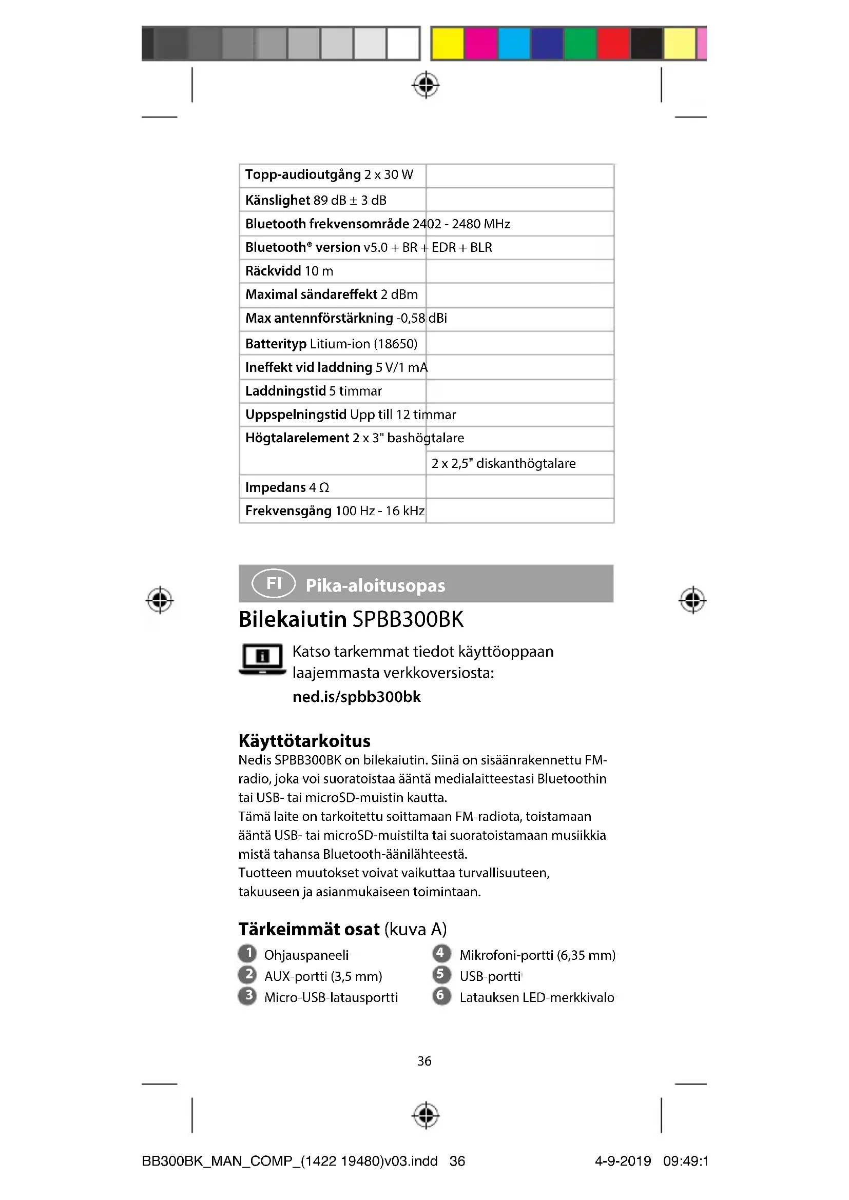 KÄYTTÖOHJE SPBB300BK NEDIS