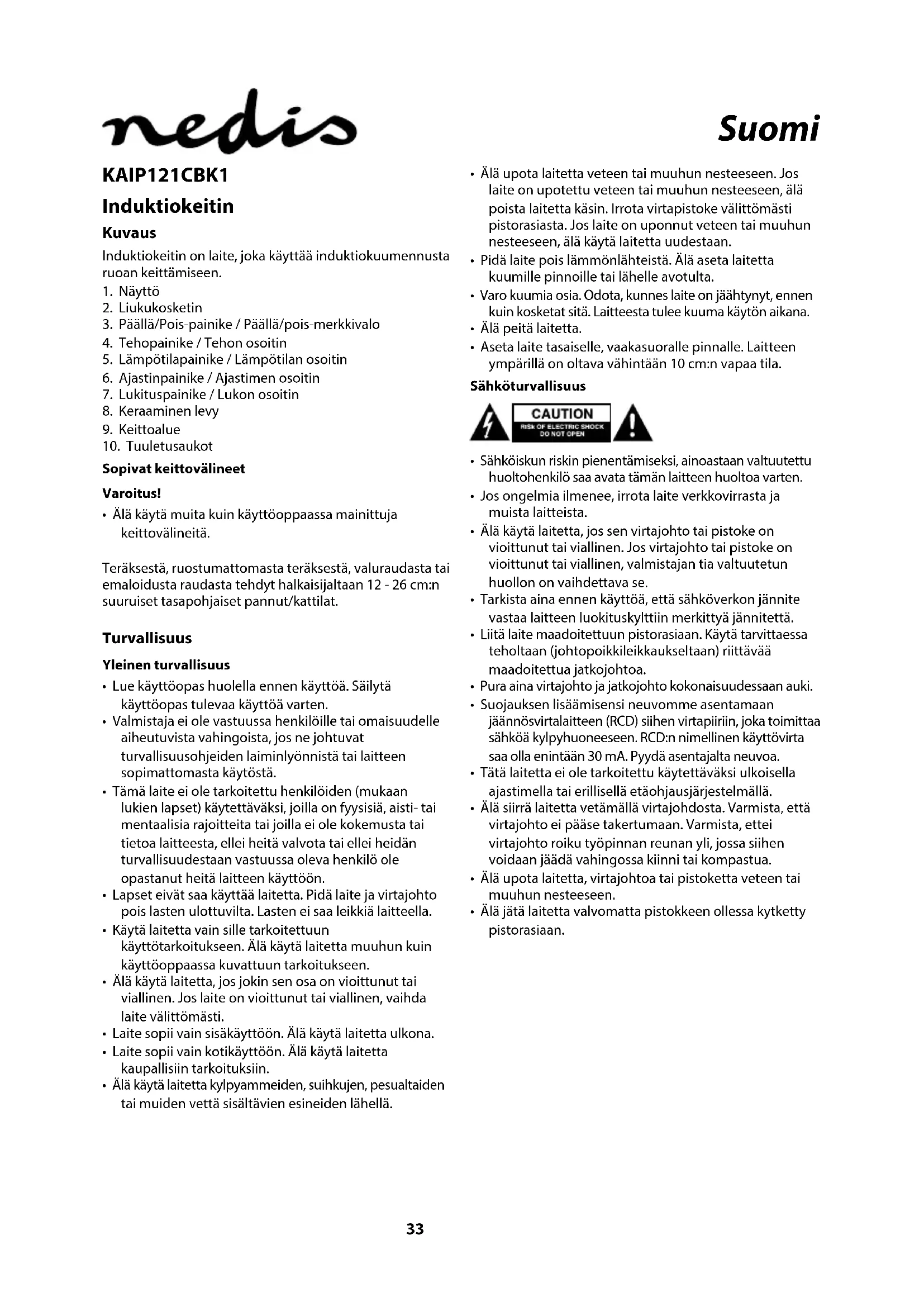 KÄYTTÖOHJE KAIP121CBK1 NEDIS