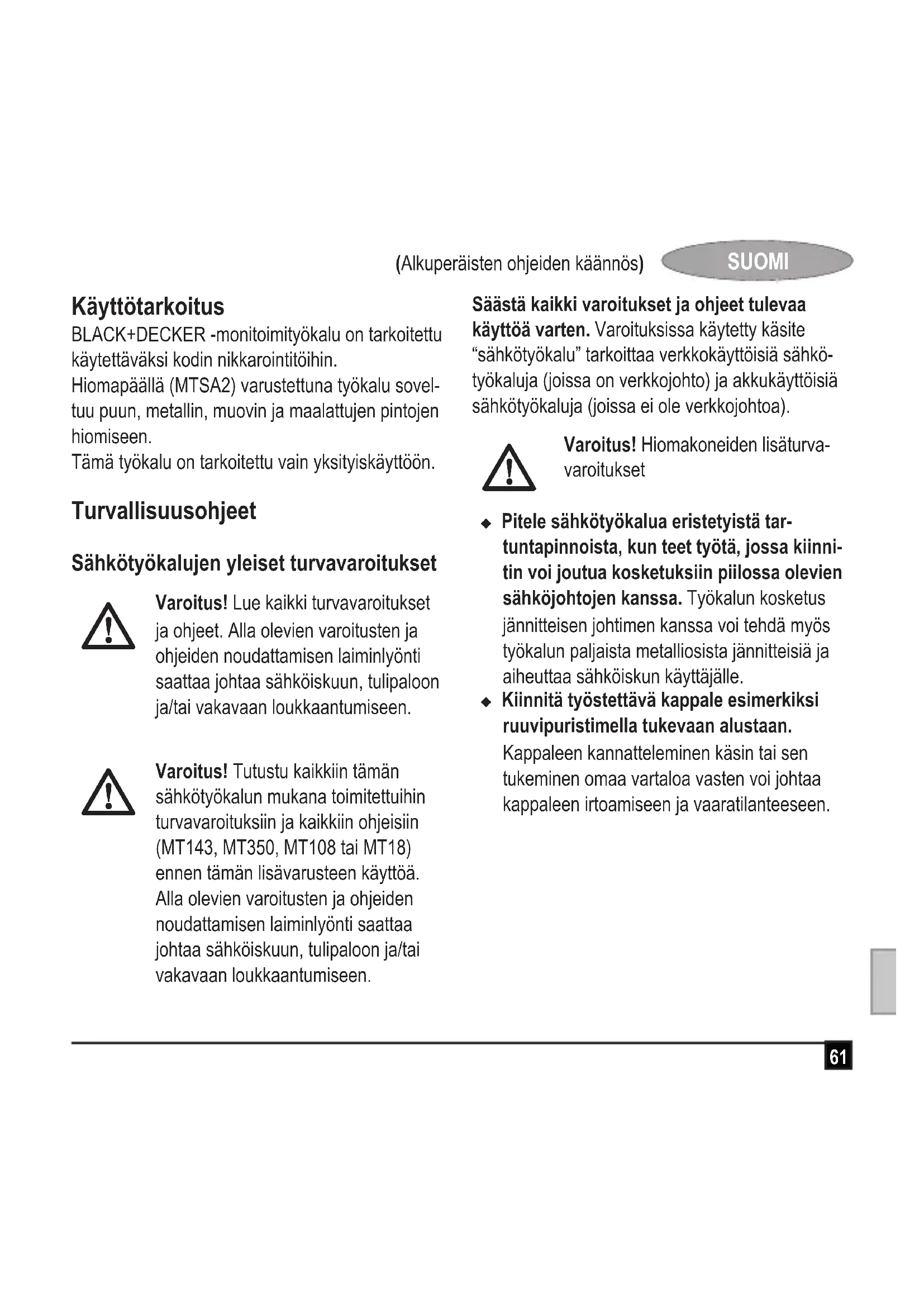 KÄYTTÖOHJE MTSA2 BLACK & DECKER