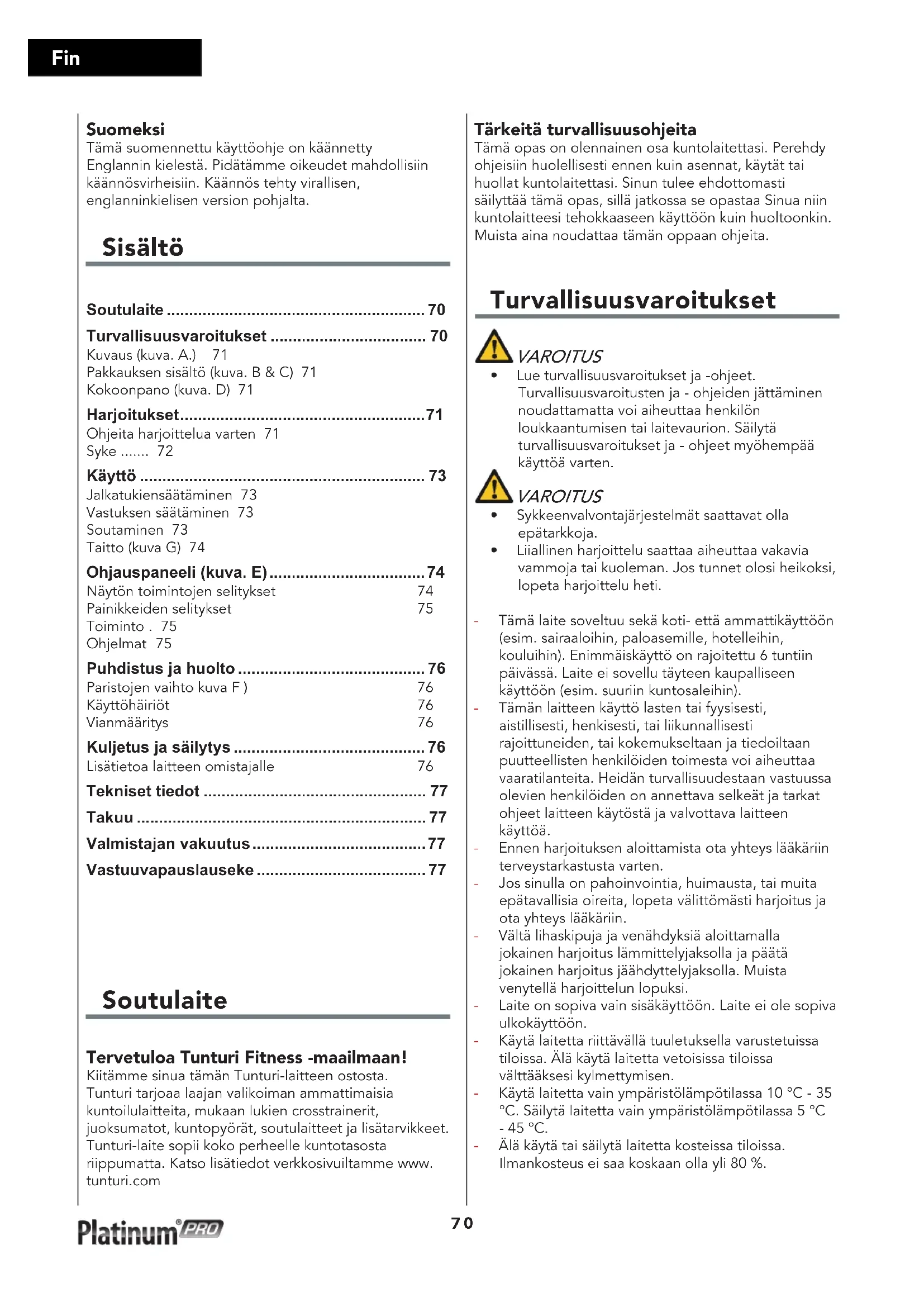 Löydä laitteen käyttöohje ilmaiseksi Platinum Rower PRO TUNTURI PDF-muodossa.