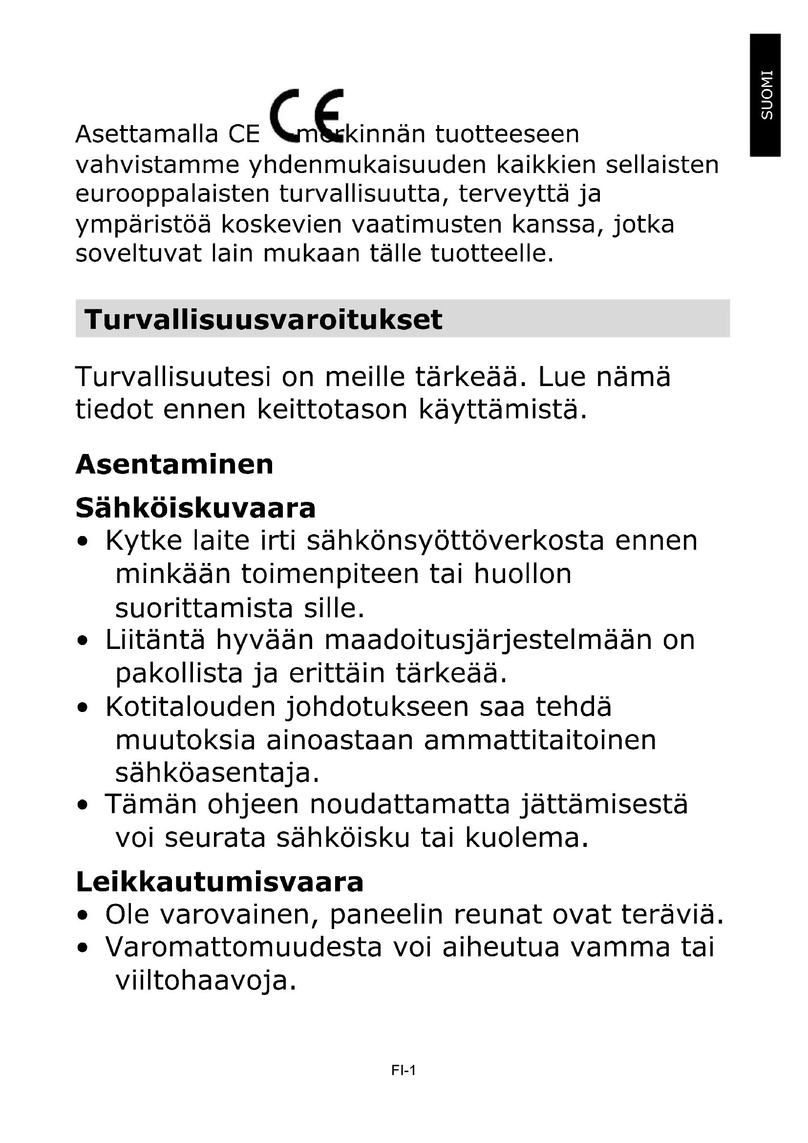 - Varomattomuudesta voi aiheutua vamma tai viiltohaavoja.FI-2 Tärkeitä turvallisuusohjeita