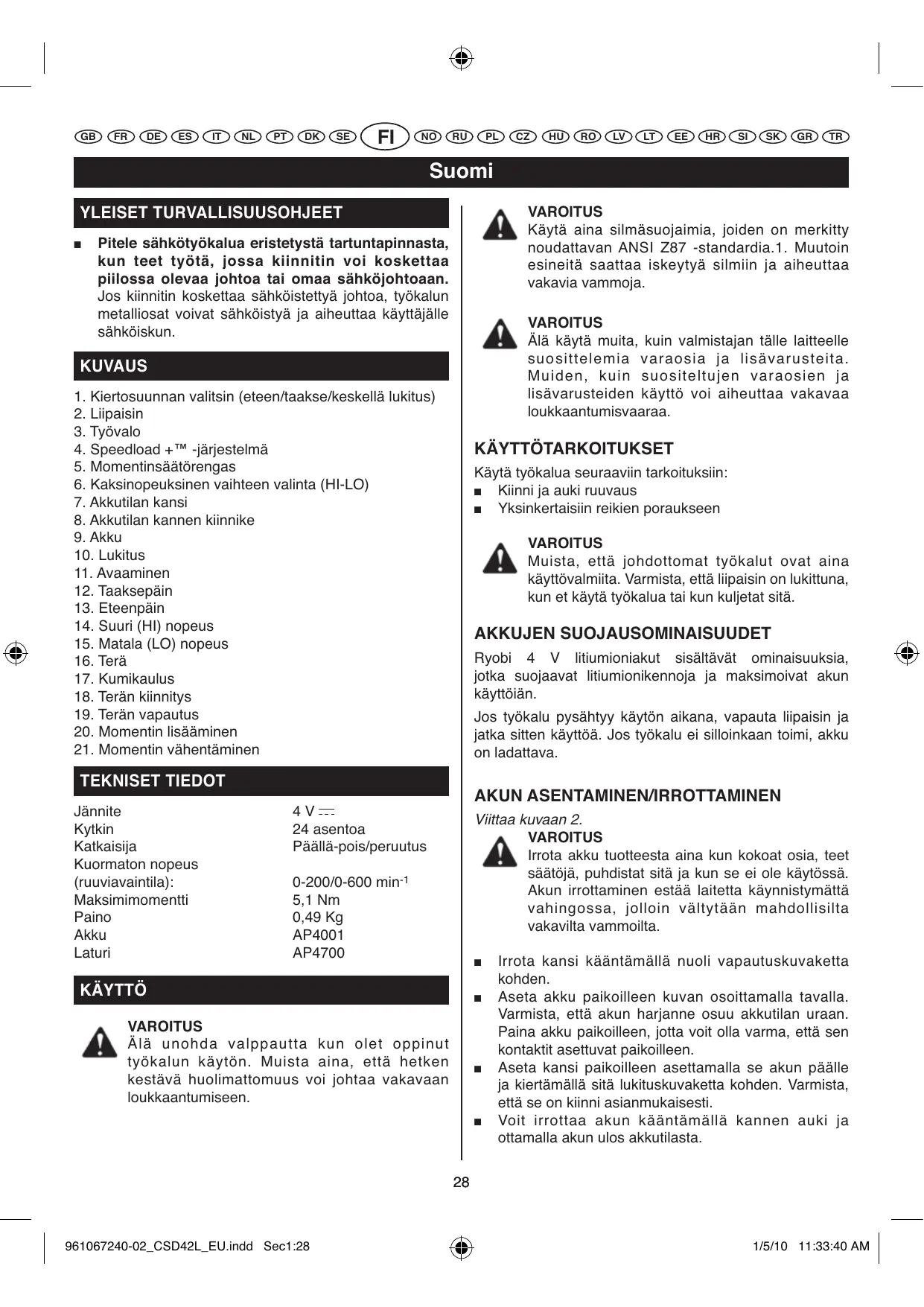 KÄYTTÖOHJE CSD 40 LI, CSD42L RYOBI