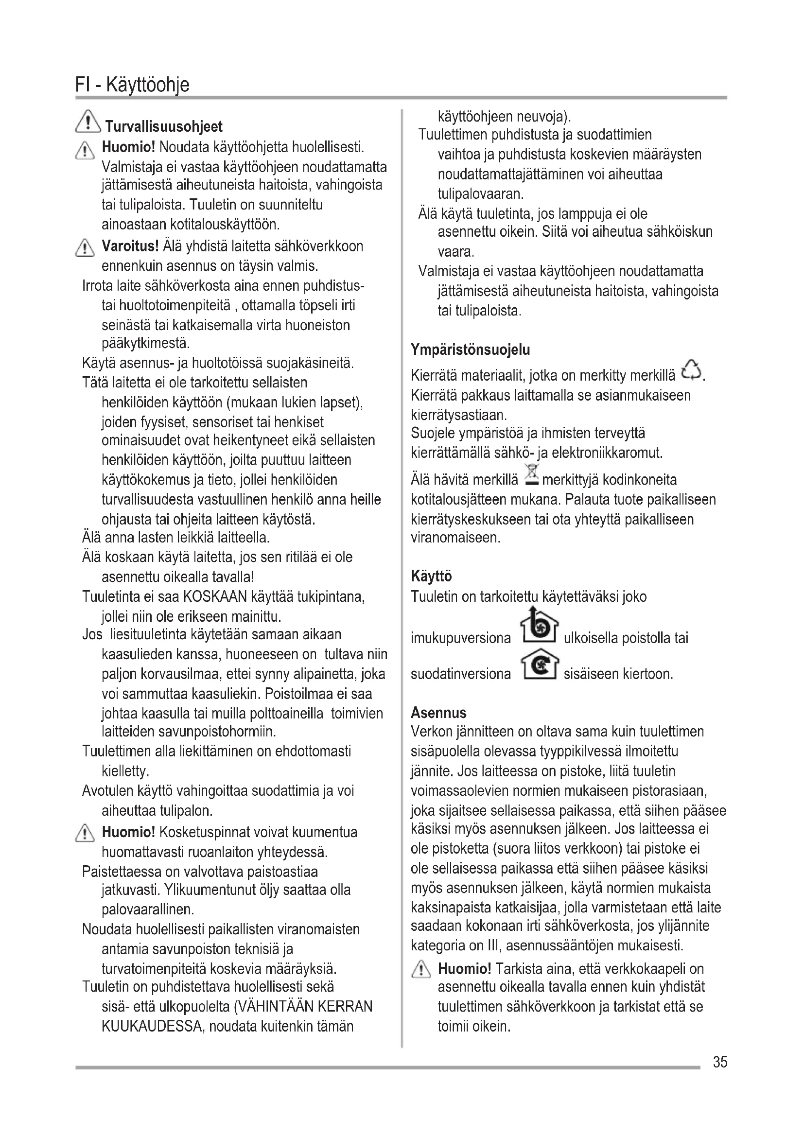 Liesituuletin Käyttöohje 35
