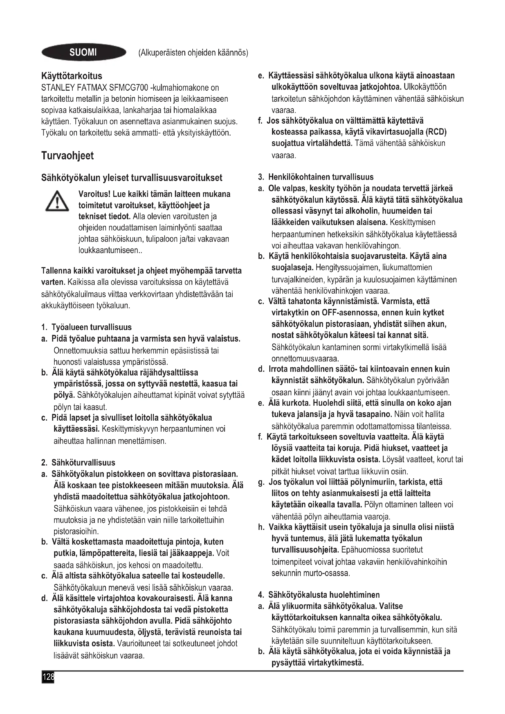 KÄYTTÖOHJE SFMCG700 STANLEY