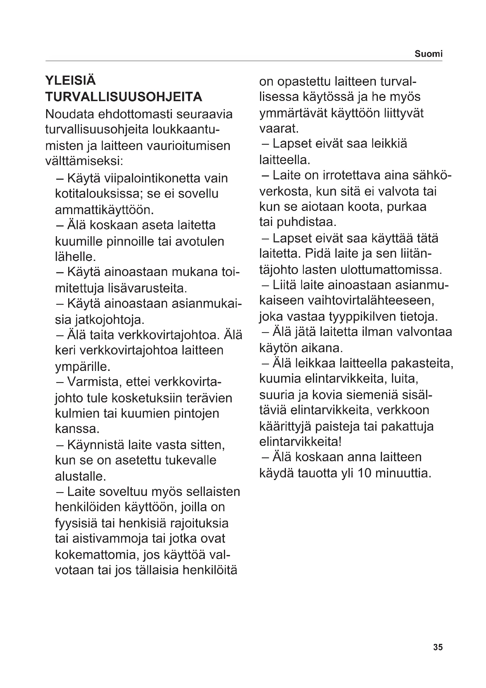 - Pyyhi kotelo ja kaikki irrotetut osat, mukaan lukien pyöröterä, kostealla liinalla. Suomi38 Silloin tällöin