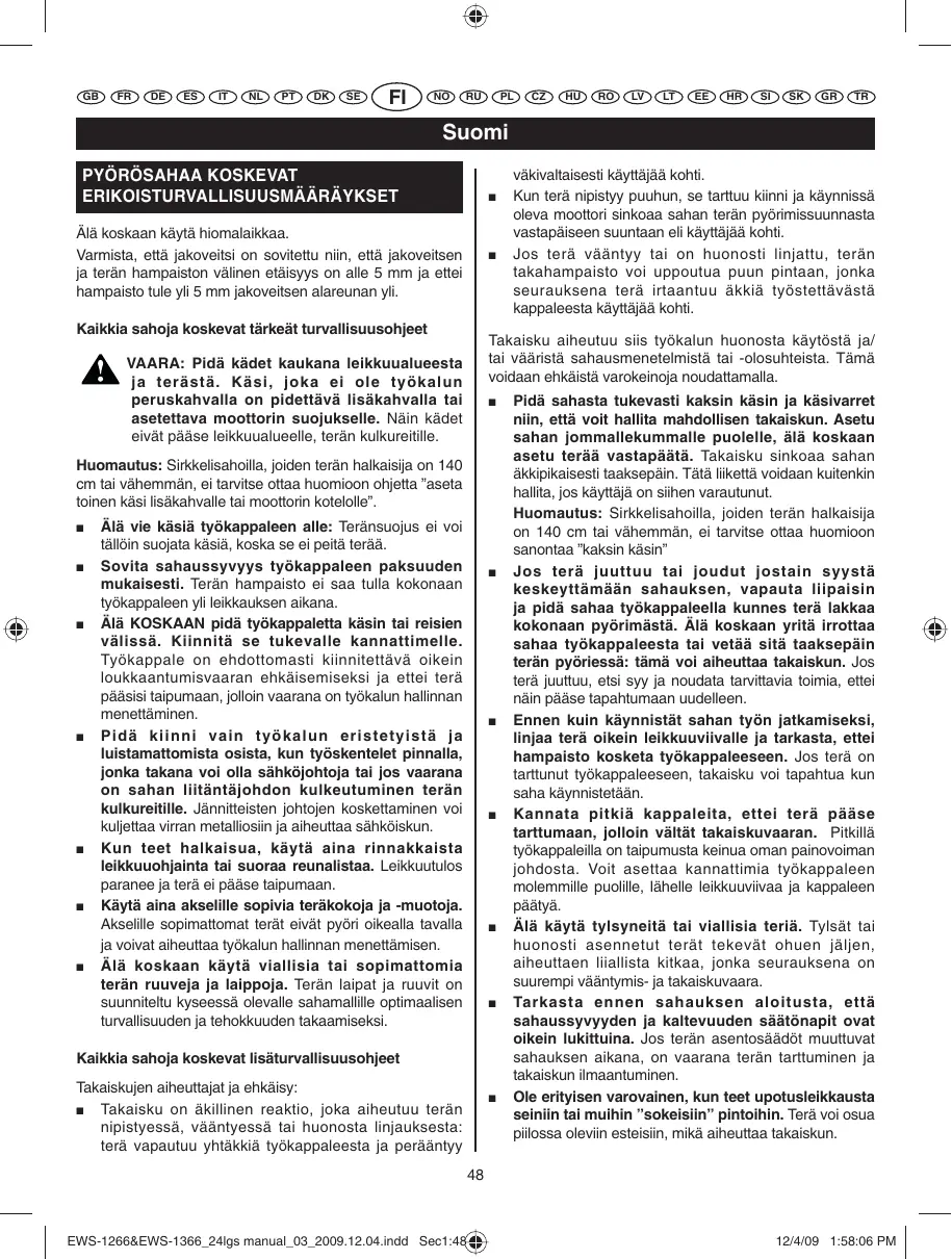 EWS-1266 - Pyörösaha RYOBI - Ilmainen käyttöohje ja opas