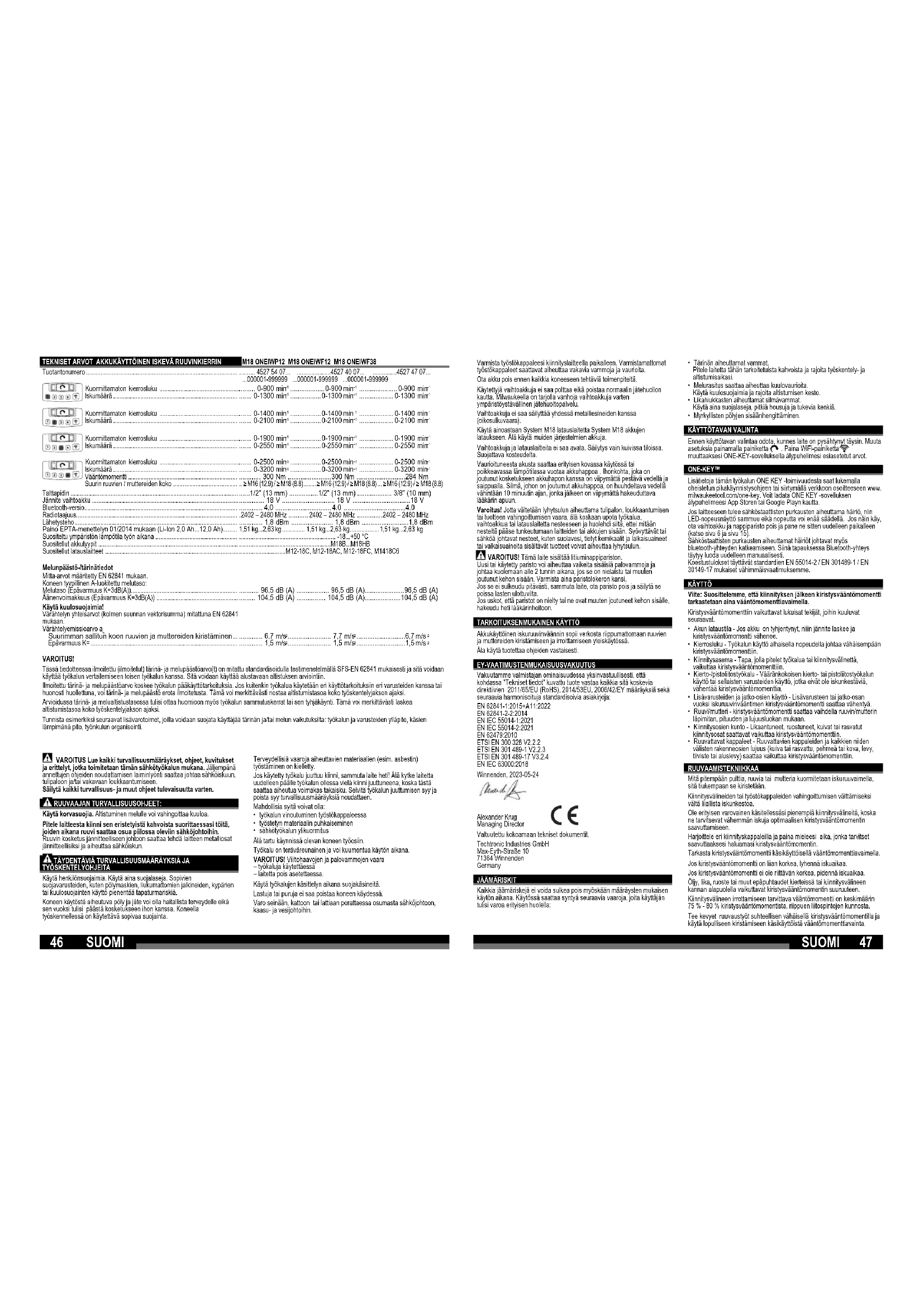 KÄYTTÖOHJE M18 ONEIWF12 MILWAUKEE