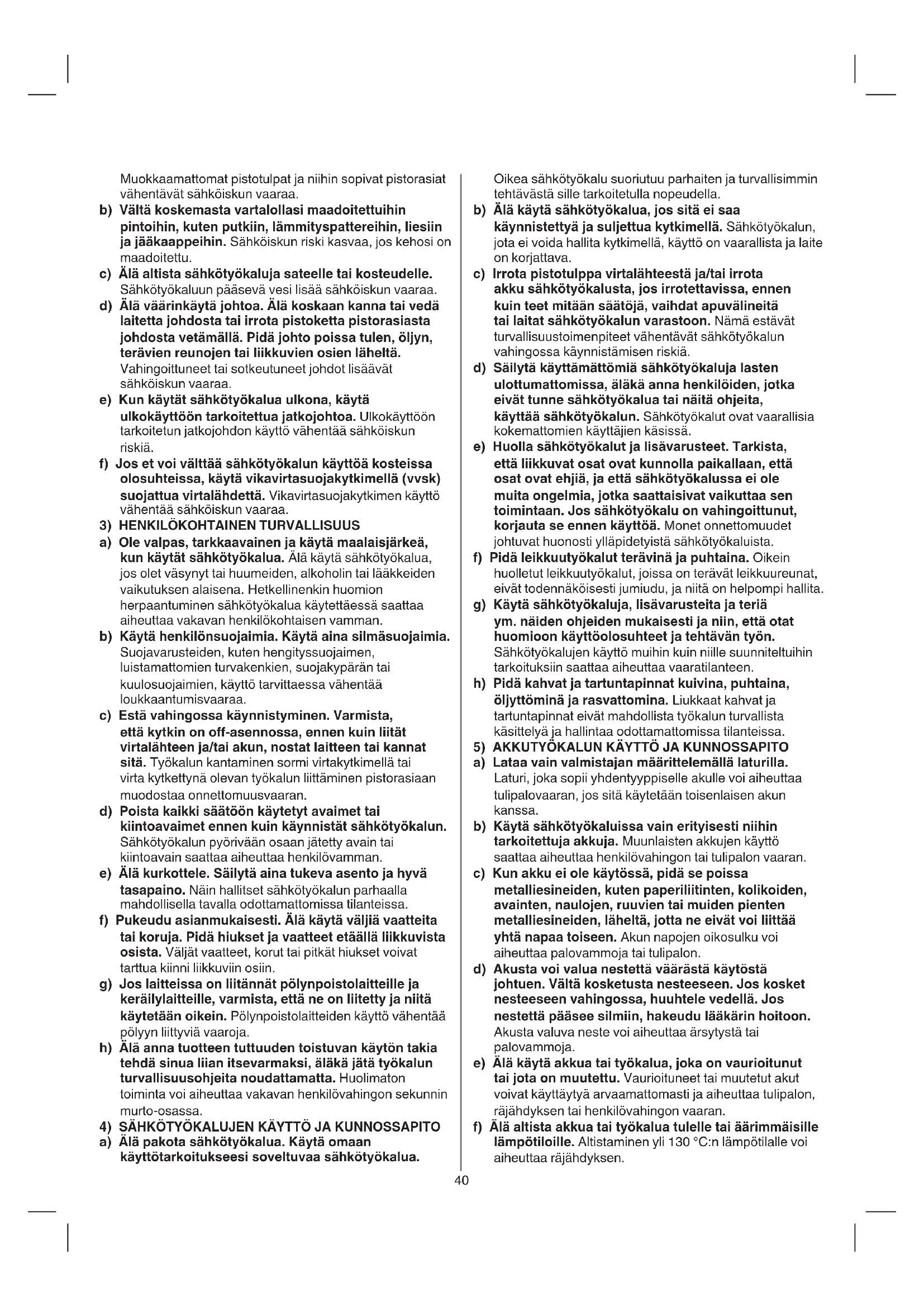 4) SÄHKÖTYÖKALUJEN KÄYTTÖ JA KUNNOSSAPITO